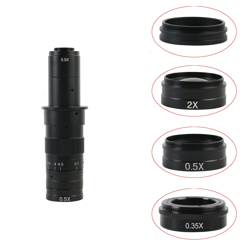 Линза Барлоу 0,5x0,35x2X1X, вспомогательное стекло для объектива 42 мм, для камеры в стиле индустрии видеомикроскопа 10A, 300x, 180x, 120x