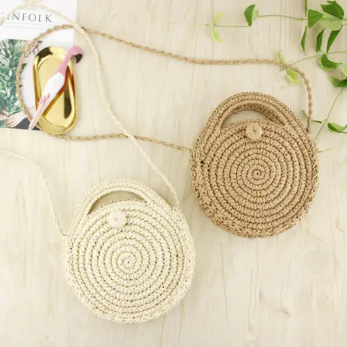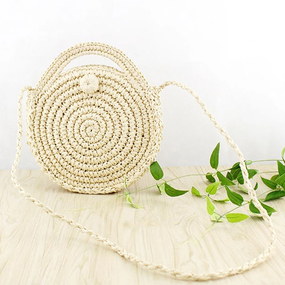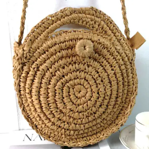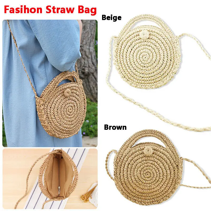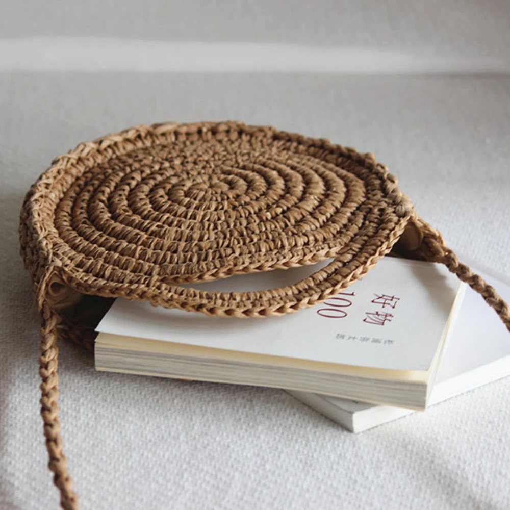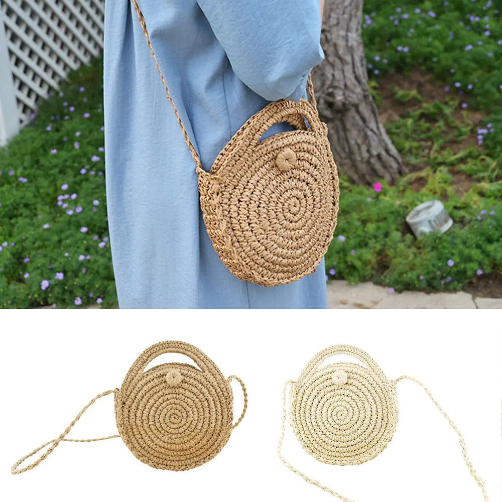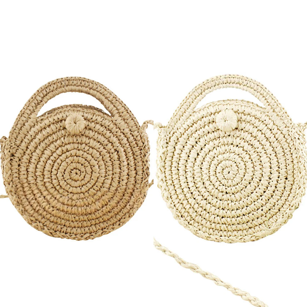 Круглая плетеная Плетеная соломенная Пляжная сумка через плечо для женщин, подарочная корзина