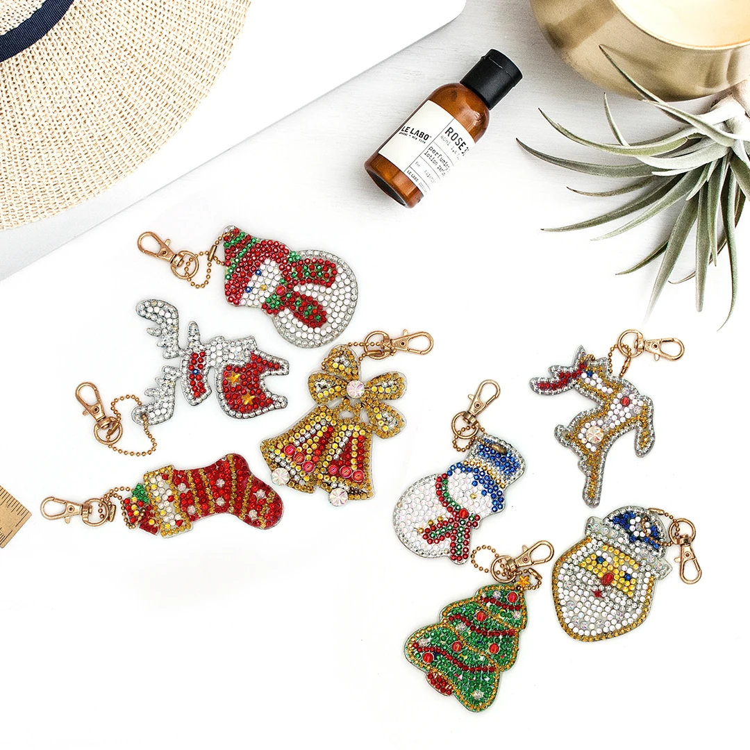 Брелок для ключей сделай сам, Рождественский брелок со стразами особой формы с полной алмазной живописью, вышивка крестиком, женский брелок для ключей