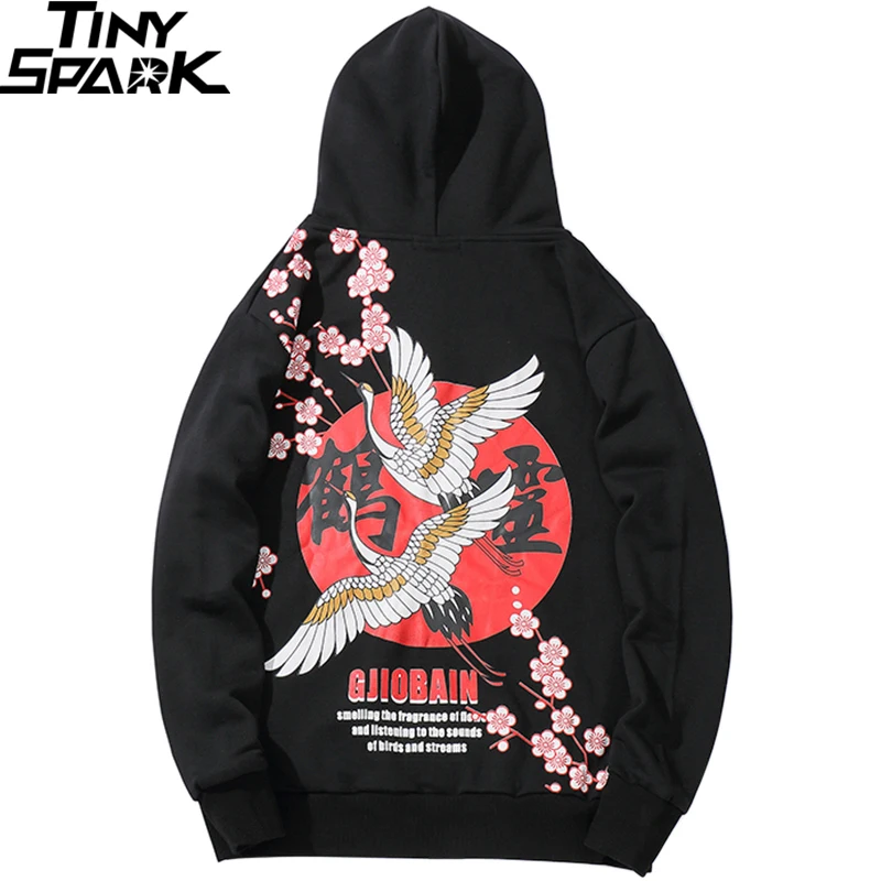 Мужская толстовка в стиле Харадзюку, Свободный пуловер с капюшоном и цветочным принтом в китайском стиле, осень 2019