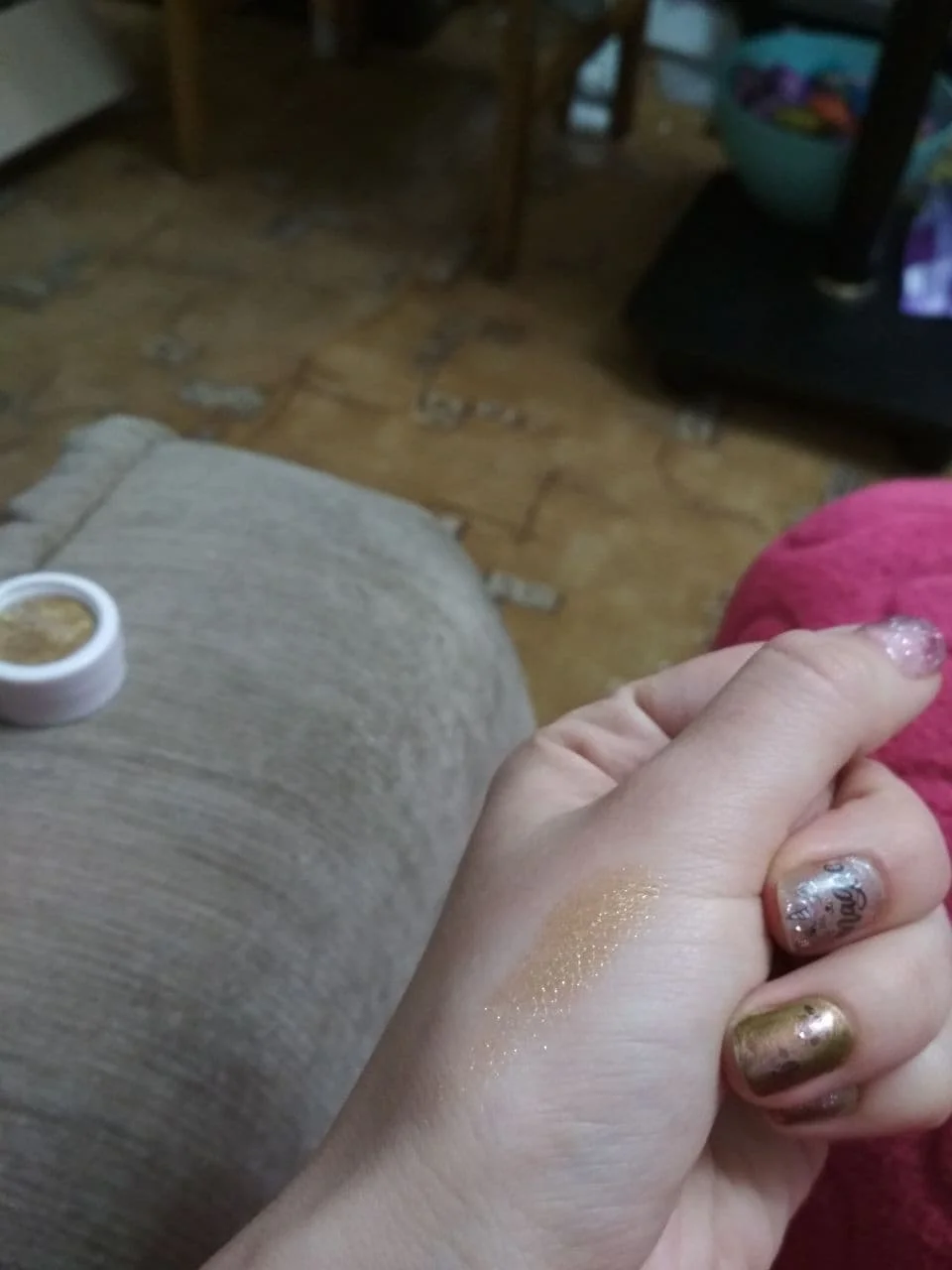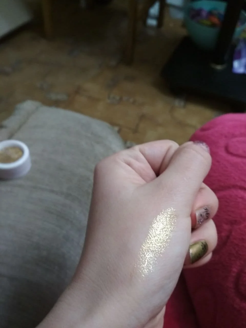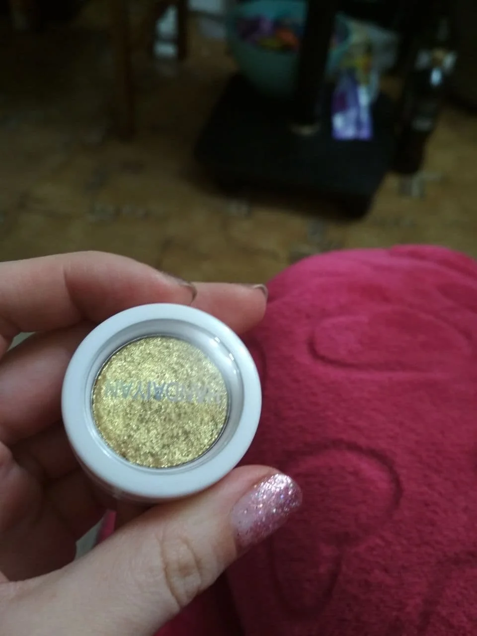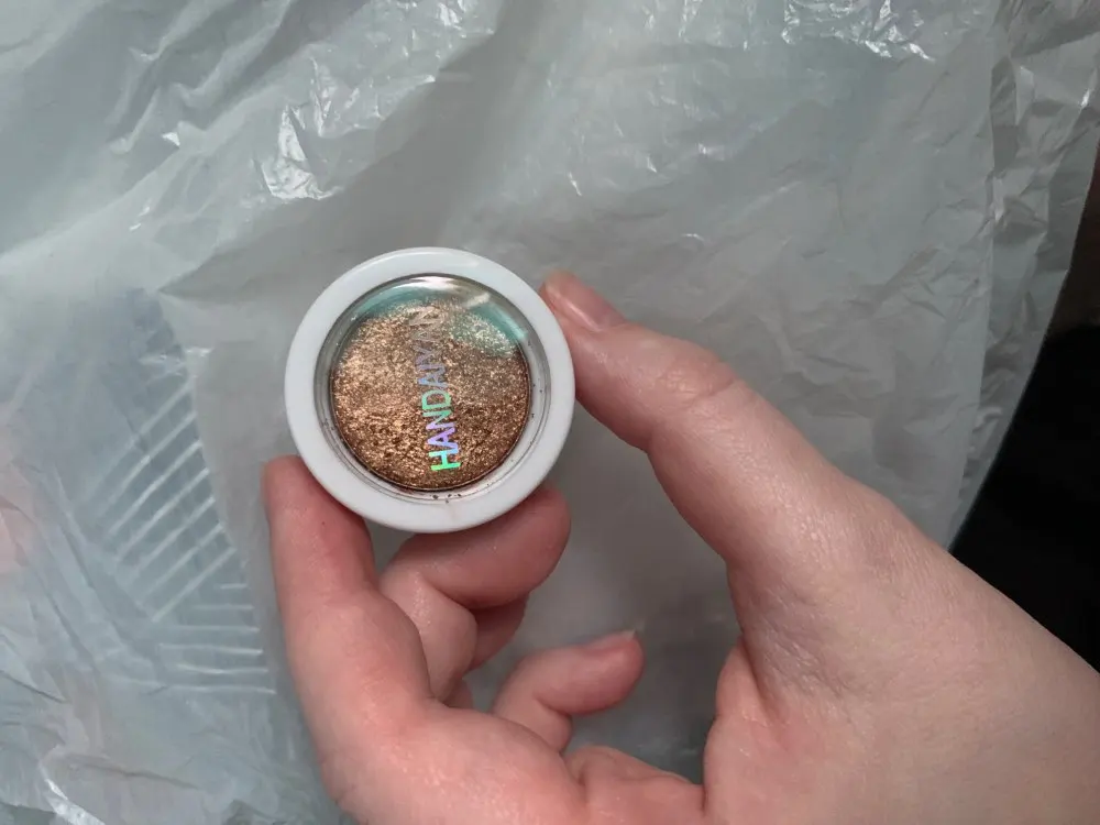 nice, came in a small cardboard box, I guess it's replica of colorpop super shock shadows. it's pointless to try and apply it with a brush- applies well only with fingers, interesting duochrome shimmer with transparent base. ordered mid november, got it on 19 jan, London