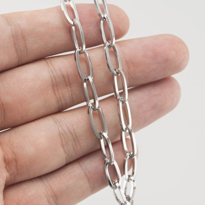 Цепочка Из Нержавеющей Стали для ювелирных изделий, длинная овальная цепочка с О-образным звеном, золотое ожерелье по метру, Cadenas Por Metros, без зажимов
