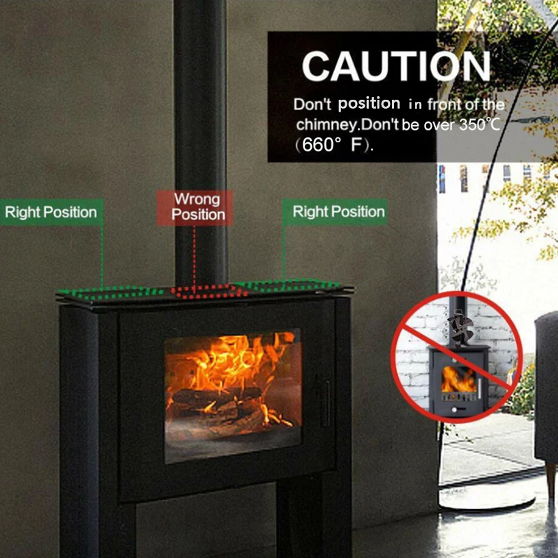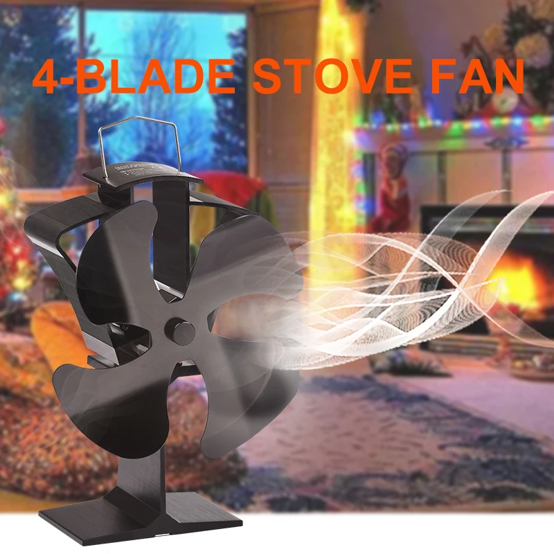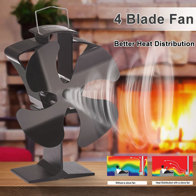 Черный 4 лезвия Вентилятор для печи, работающий от тепловой энергии эко камин деревянная горелка Тихая энергосберегающая домашнее эффективное распределение