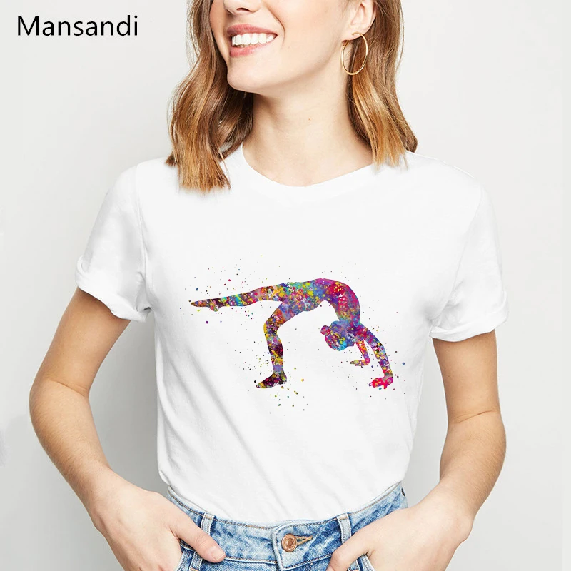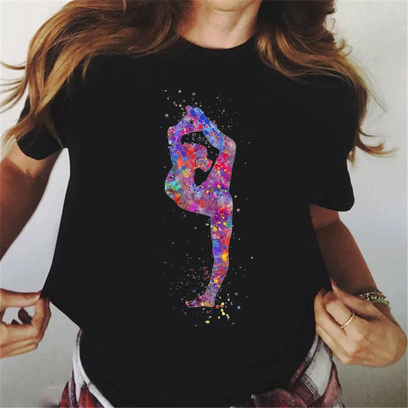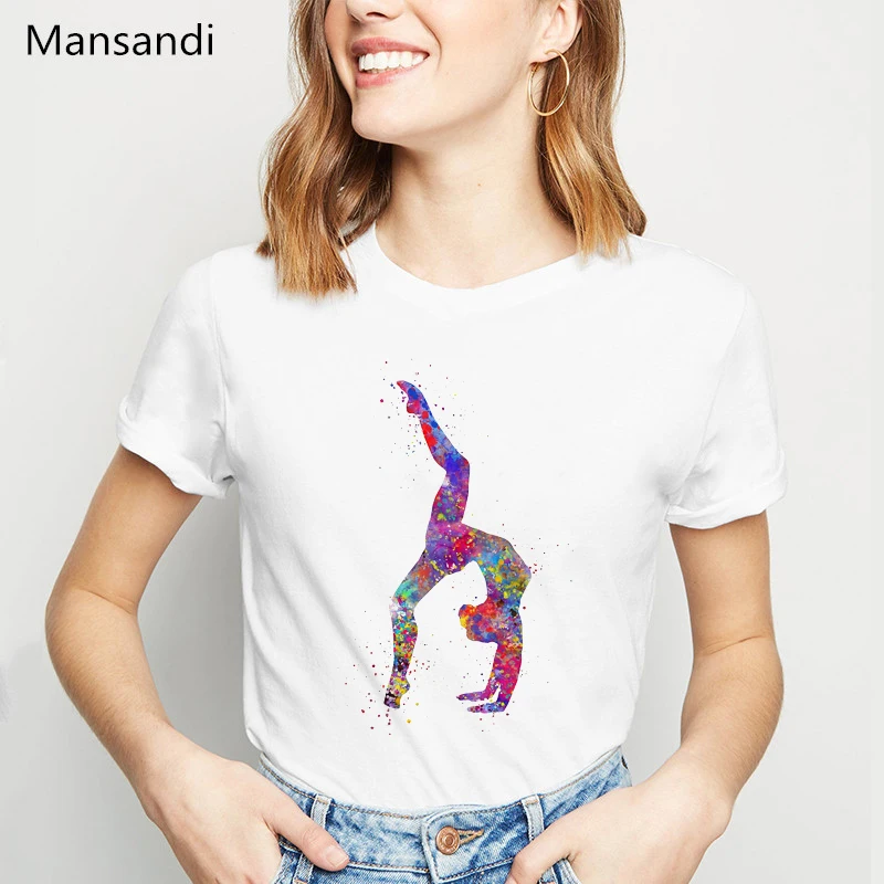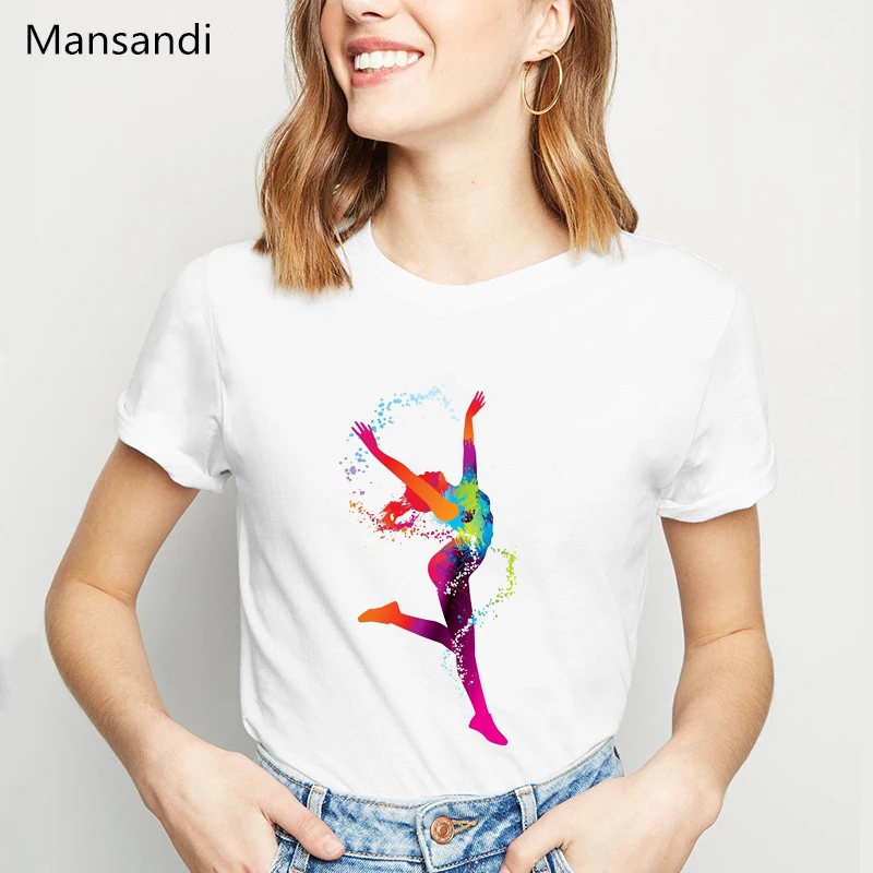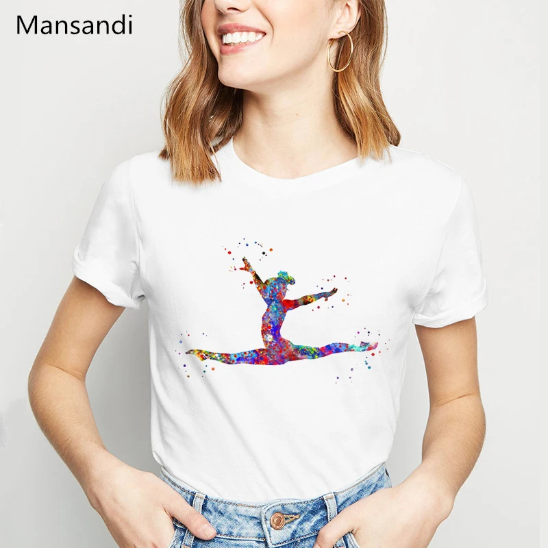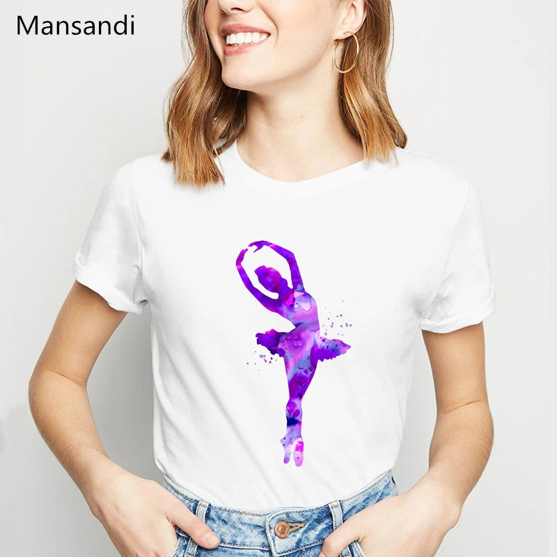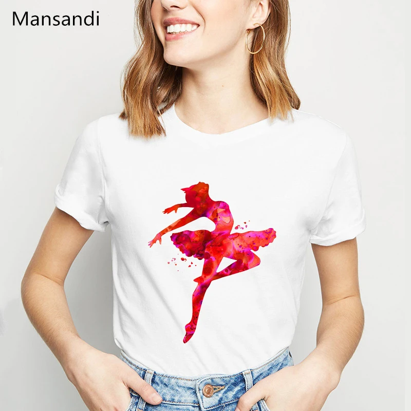 Женская одежда 2021, акварельная футболка для балерины, Женская Вин...