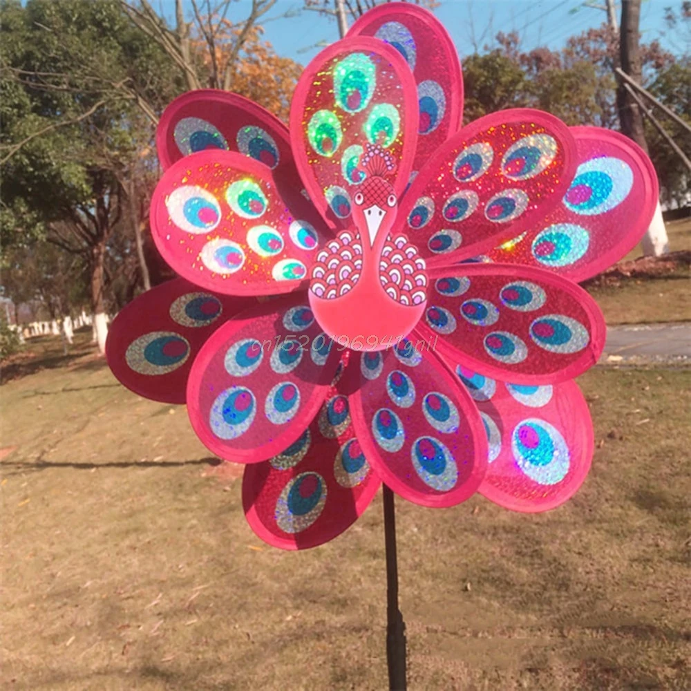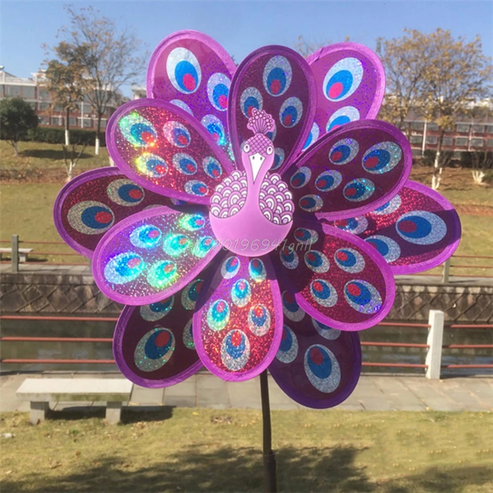 Двухслойный Павлин лазерные блестки ветряная мельница красочный ветер Спиннер домашний садовый Декор Двор детская игрушка Au08 19 Прямая поставка