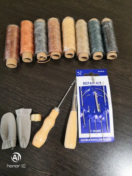 Набор для шитья кожи с вощеной нитью, игла для кожи, шило для шитья...
