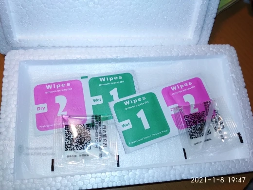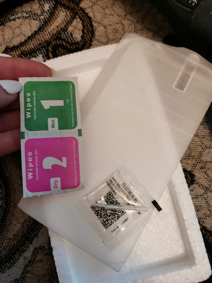 спасибо продавцу! Товар соответствует, два стекла, два комплекта протирок и две ампулы с протирочной жидкостью, упакованно в пенопластовую коробочку, доставка до Краснодара за 6 недель, трек отслеживался до таможни РФ, заказывал уже не первый раз, продавца рекомендую, Пять звёзд! Five stars!!!