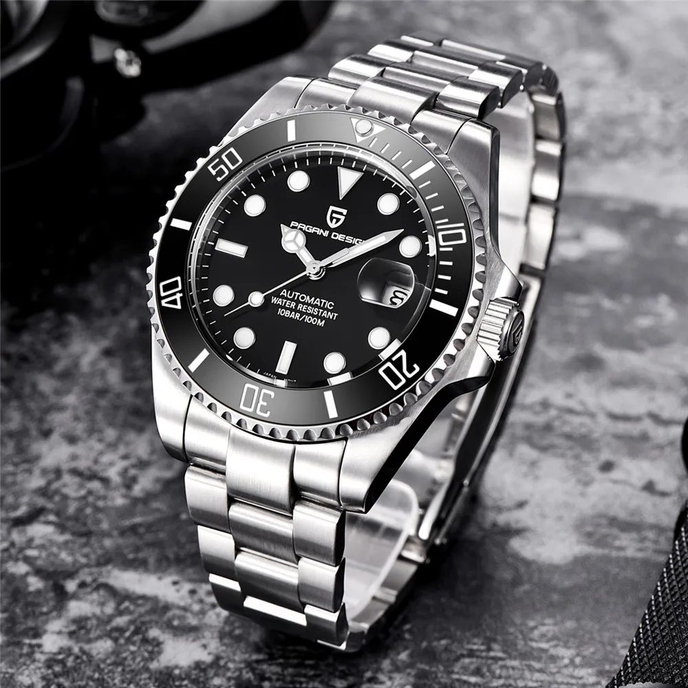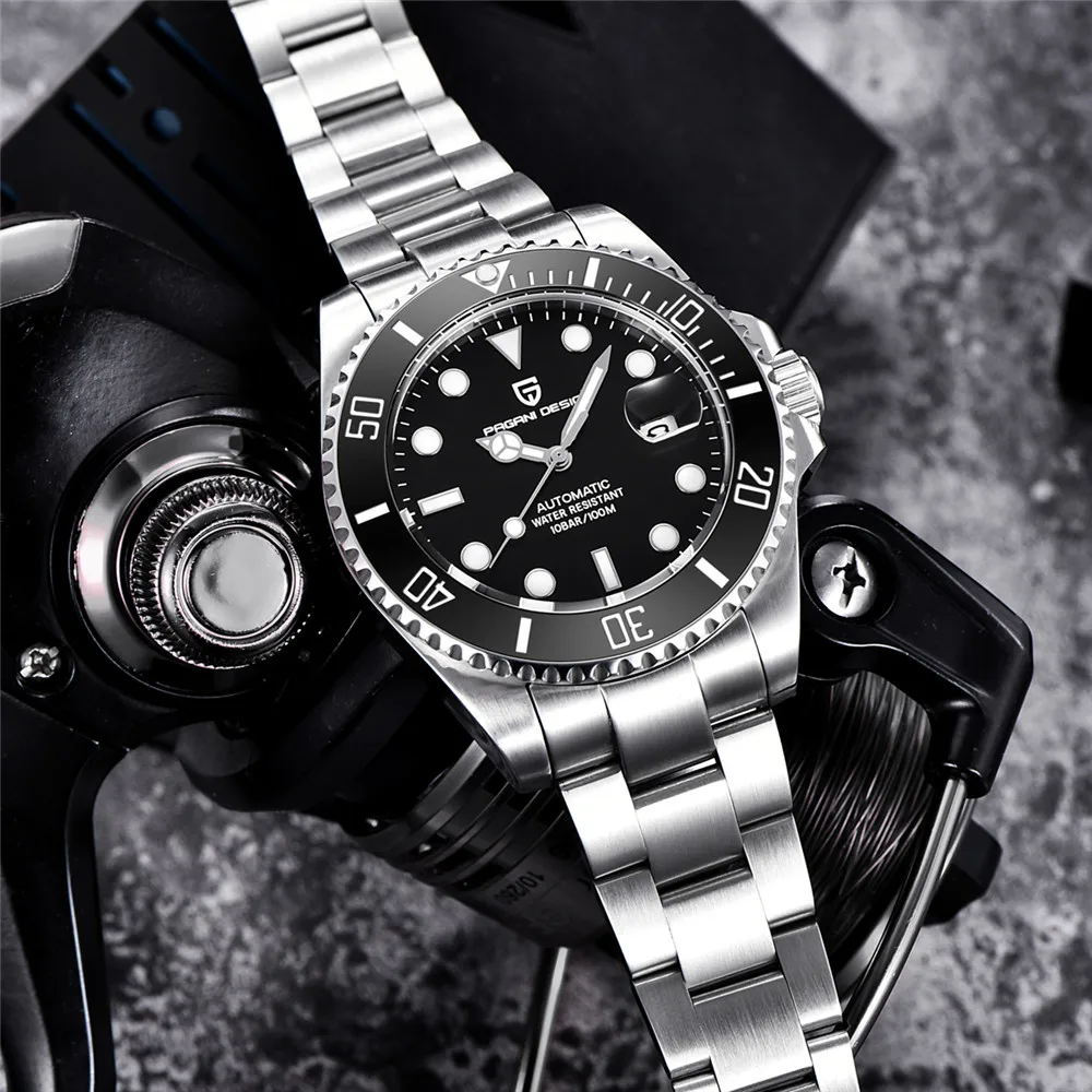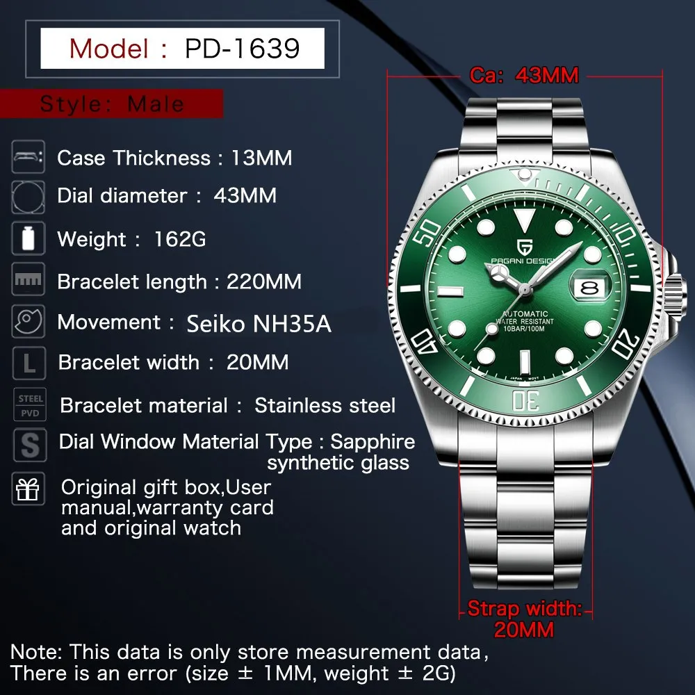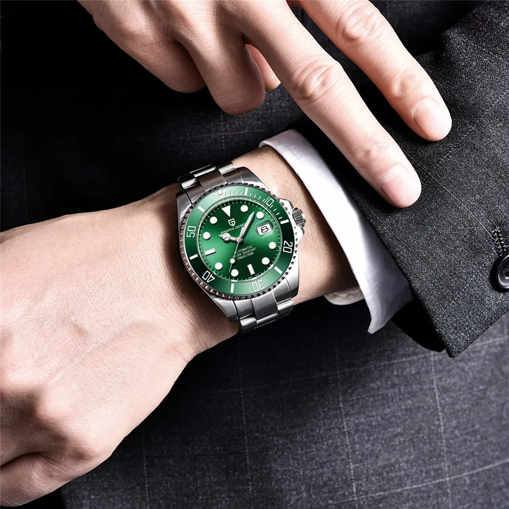 Часы наручные PAGANI Мужские механические, брендовые зеленые автоматические спортивные водонепроницаемые светящиеся деловые, 100 м