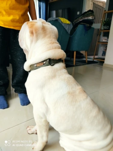 Ошейник пришёл за месяц. Сделан качественно. Кожа конечно не натуральная. Подпись отличная. На лабрадора 10 месяцев размер XXL с запасом. Думаю можно было и xl брать. Продавца рекомендую.