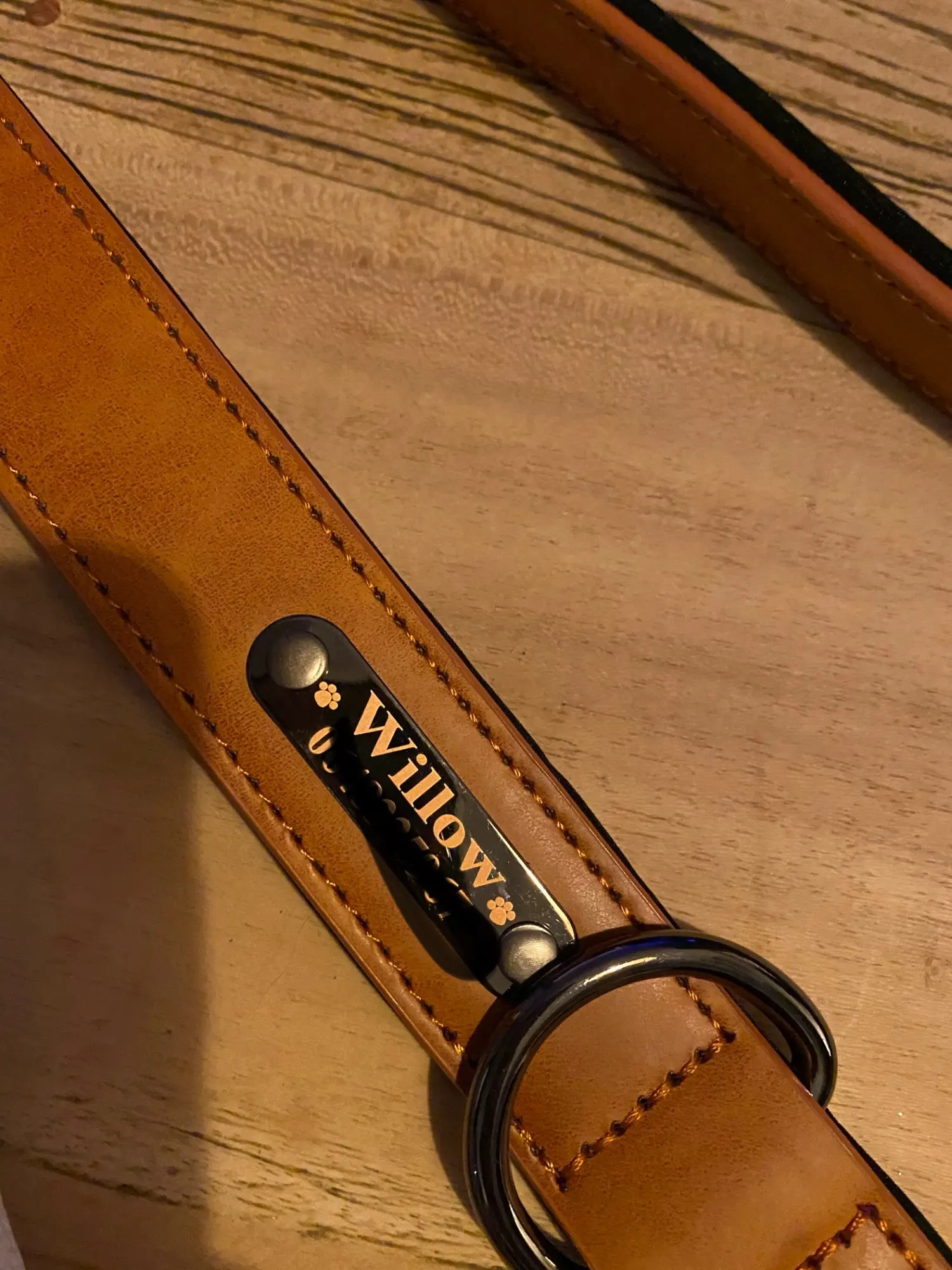 Ошейник отличного качества, все согласно описанию. Гравировка правильная и чёткая. Единственное, поводок с одной стороны кожанный, а с другой мягкая часть, как на ошейнике, думаю в носке будет пачкаться. Доставка очень быстрая.