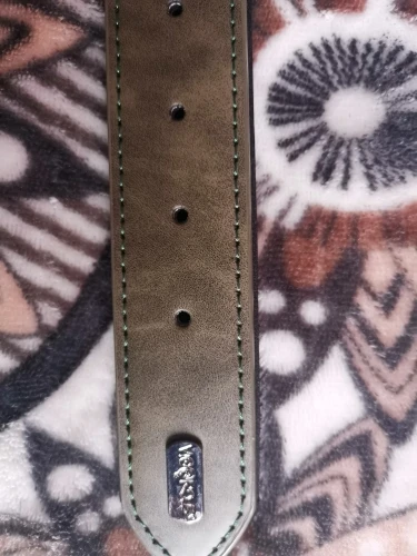Ошейник отличного качества. Заказала 16 января, получила в Адыгее 10 февраля. Это, конечно, не кожа. Но это и по цене понятно. Размер XXL: полная длина 71 см, ширина 3.5 см. С внутренней части потшит трикотажем для большего комфорта. Надпись: кличка и номер телефона - нанесена лазером на металлический шильдик. Сам шильдик прикреплён к ошейнику клепками, которые с внутренней стороны закрыты нашитым трикотажем. Товаром очень довольна, продавцу спасибо!