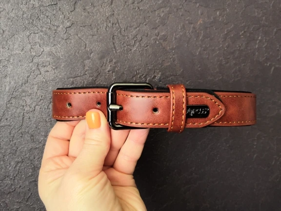 Ошейник отличного качества! Берите не пожалеете. Выгравировали имя на русском. Размер M идеален для корги.