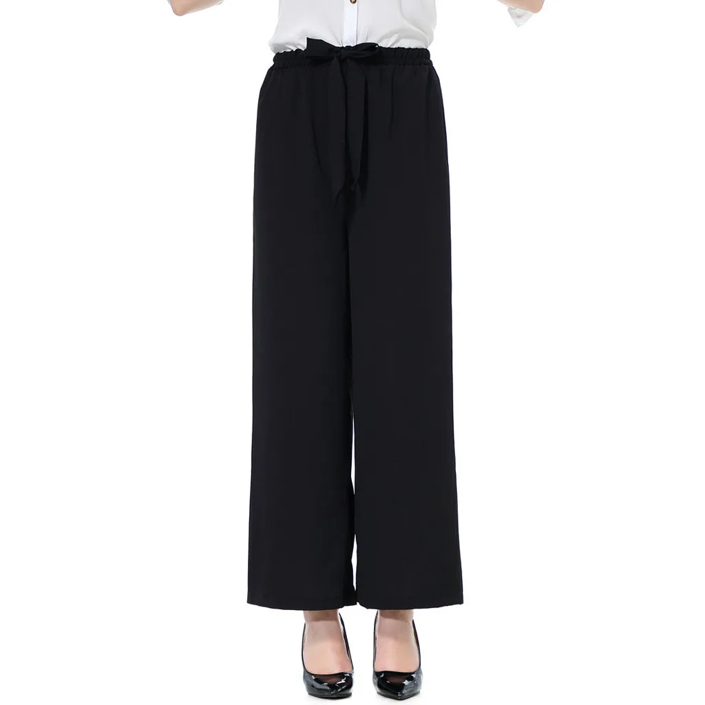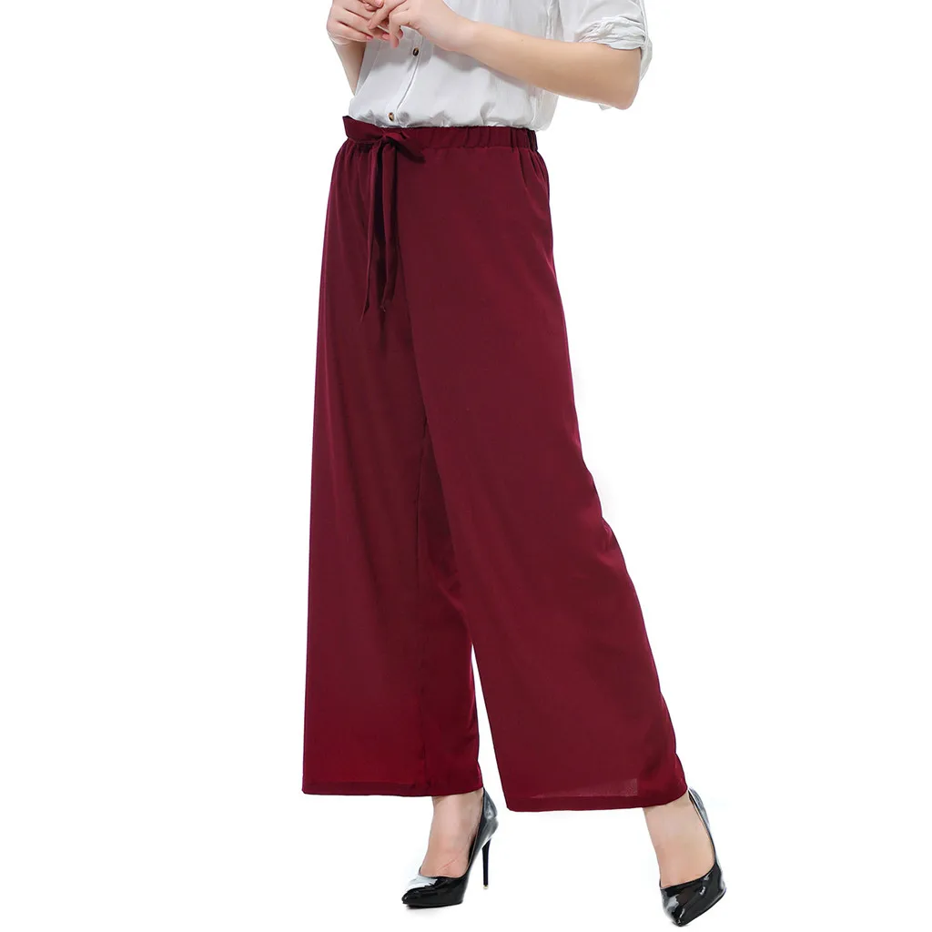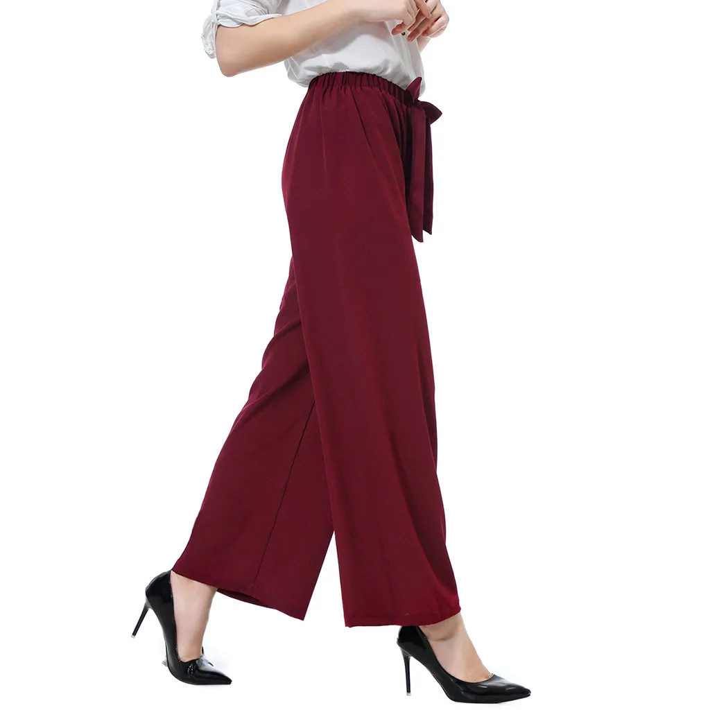 Мода женщин эластичный пояс Slim Fit случайные высокой талией свободные кружева широкие брюки ноги