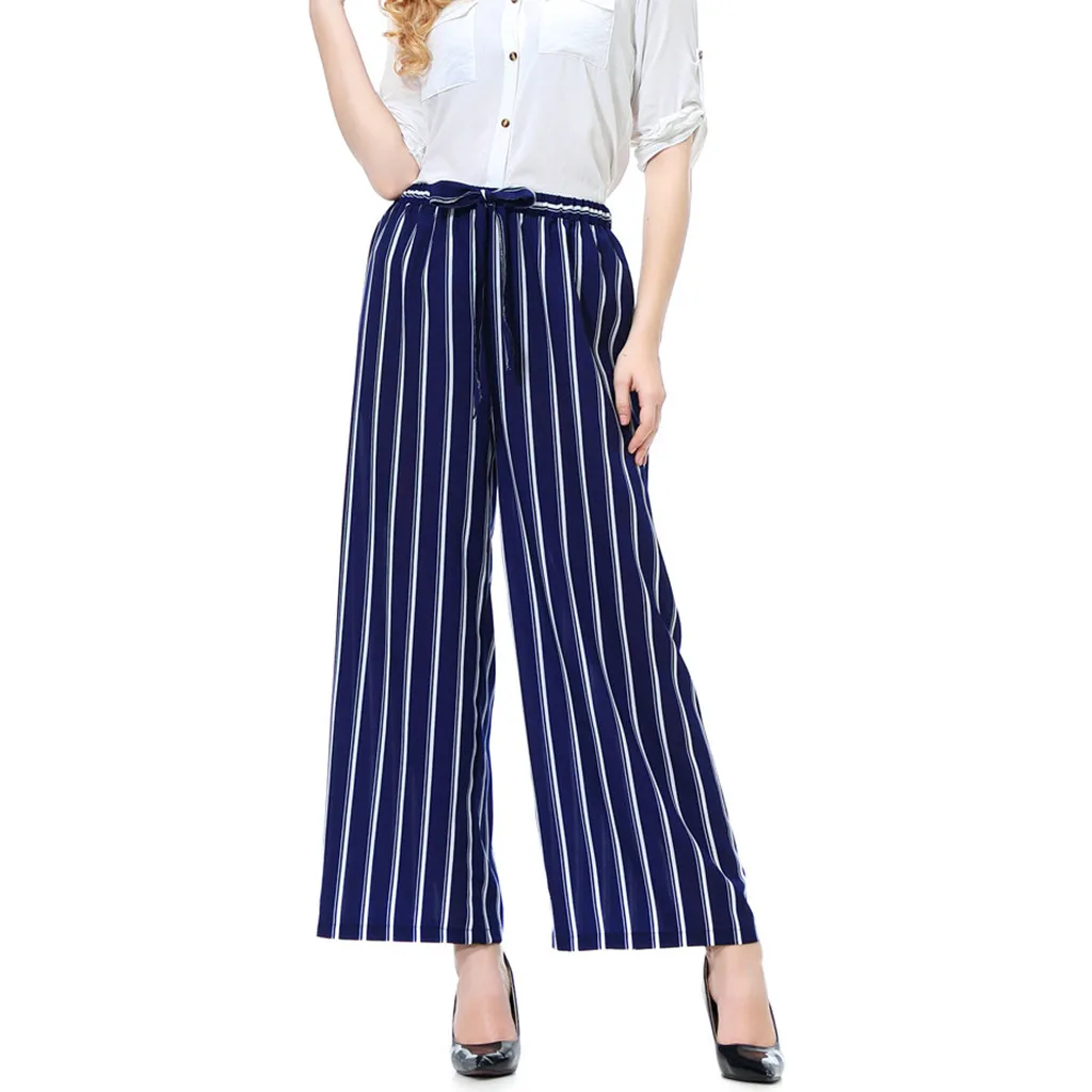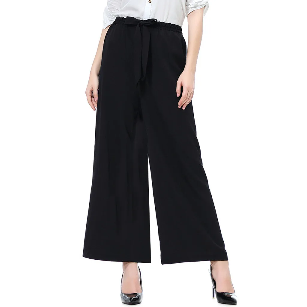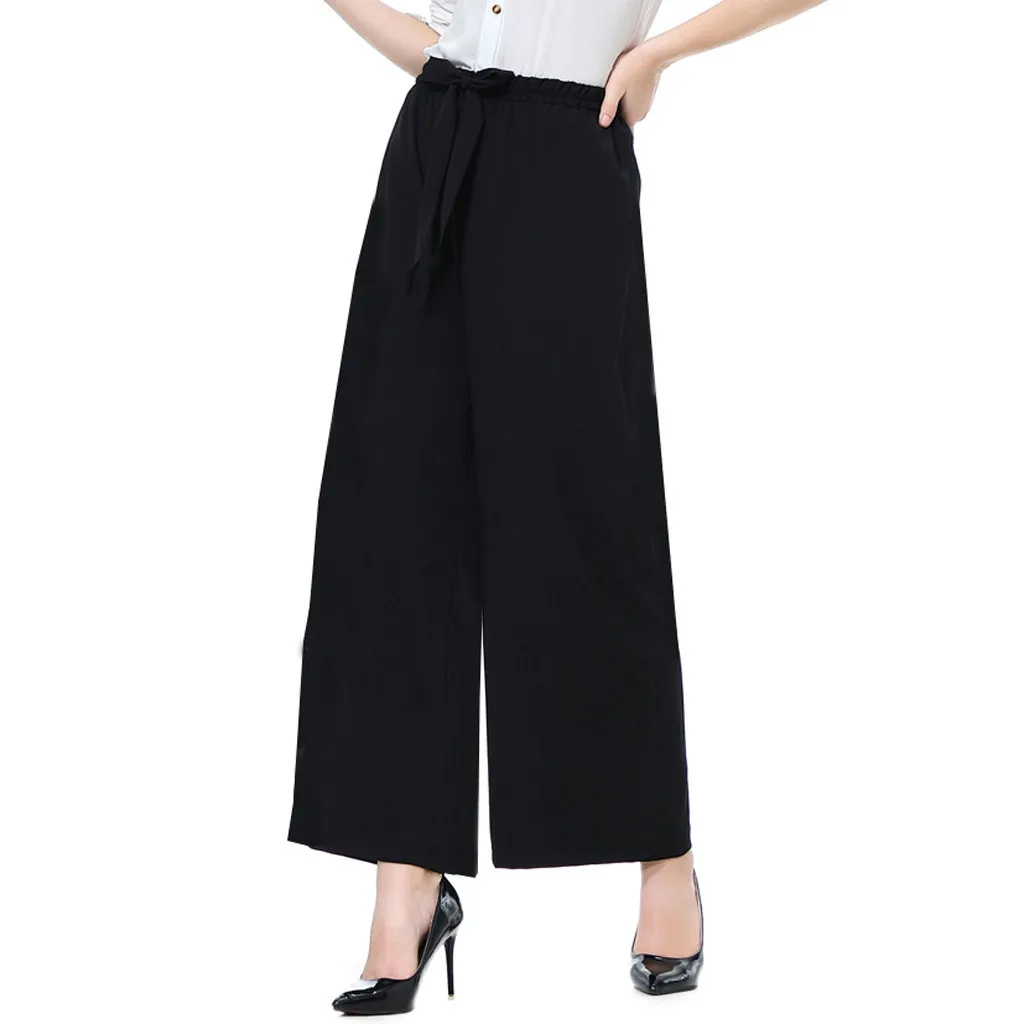 Мода женщин эластичный пояс Slim Fit случайные высокой талией свободные кружева широкие брюки ноги