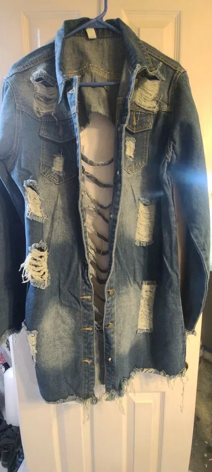 Женская Джинсовая длинная куртка, Джинсовая Верхняя одежда
