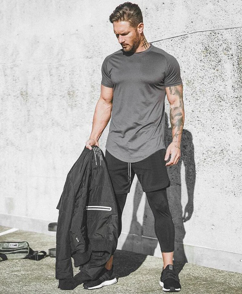 Футболка мужская сетчатая для спортивного зала, брендовая обтягивающая, однотонная быстросохнущая, для бодибилдинга и фитнеса, на лето