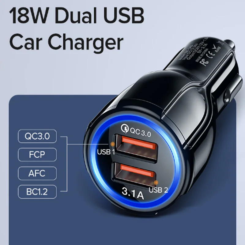 GTWIN 18 Вт 3.1A автомобильное зарядное устройство с двумя портами USB для быстрой зарядки QC 3,0 телефон зарядное устройство адаптер для iPhone 12 11 Pro Max 7 8 Xiaomi Redmi Huawei