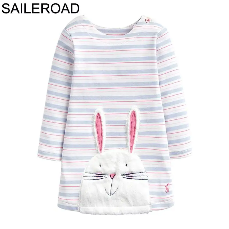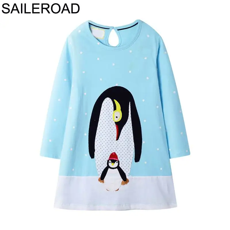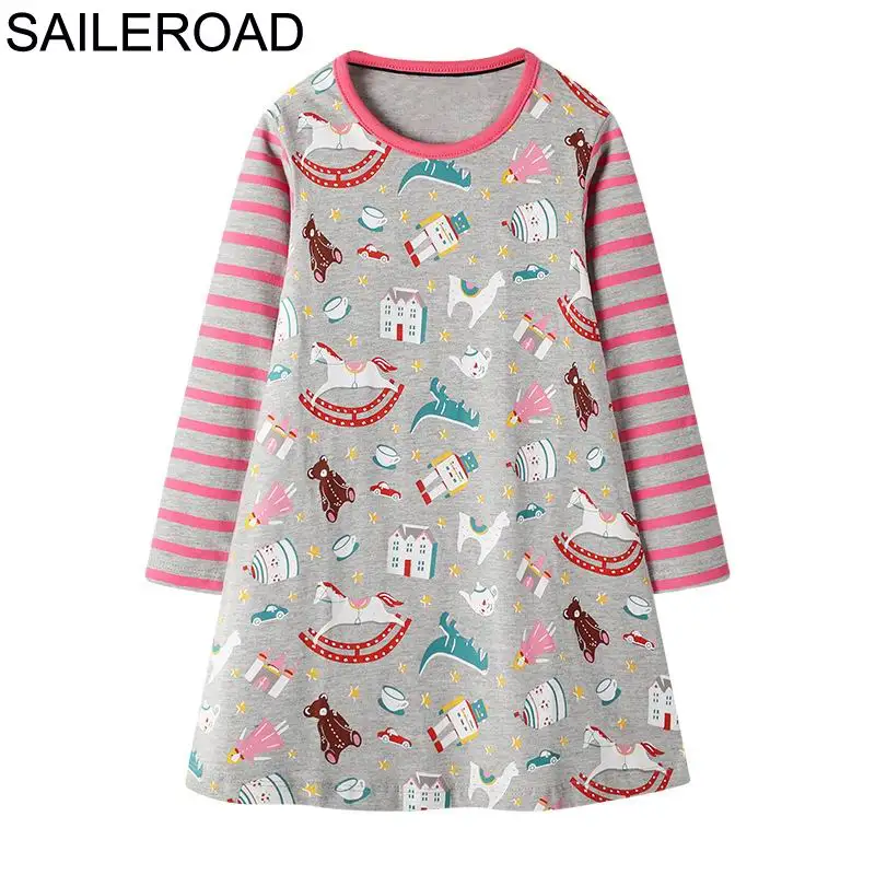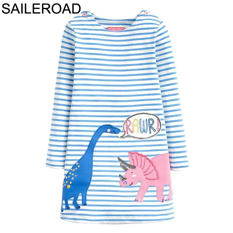 SAILEROAD Платье динозавра Девушка Одежда Животные Аппликации Хлопок Платья для девочек для детской одежды Платье с принтом с длинным рукавом Единорог