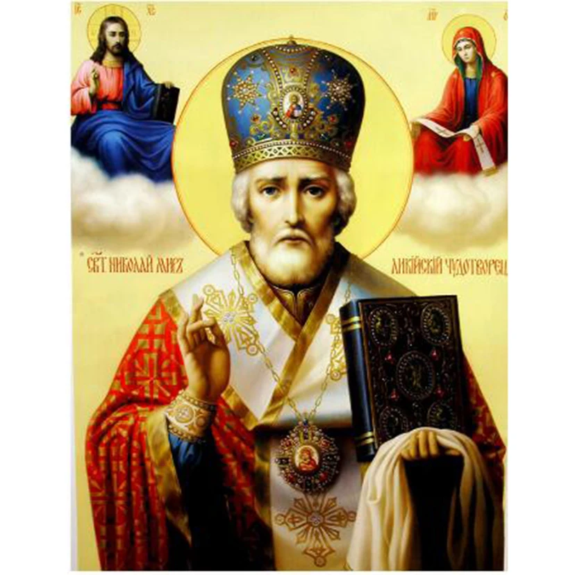 Новое поступление Икона св. Николая 5D ручная работа Алмазный рисунок вышивка крестиком Алмазная мозаика домашний декор WG1427