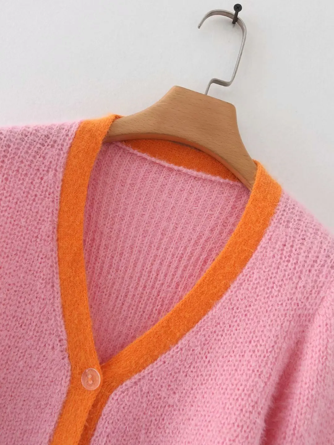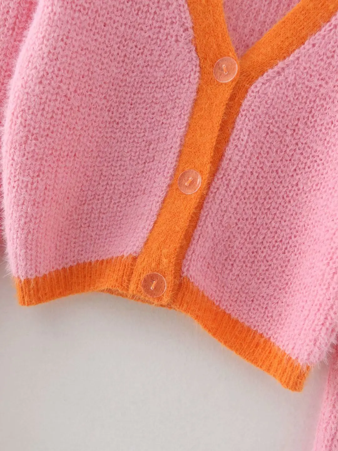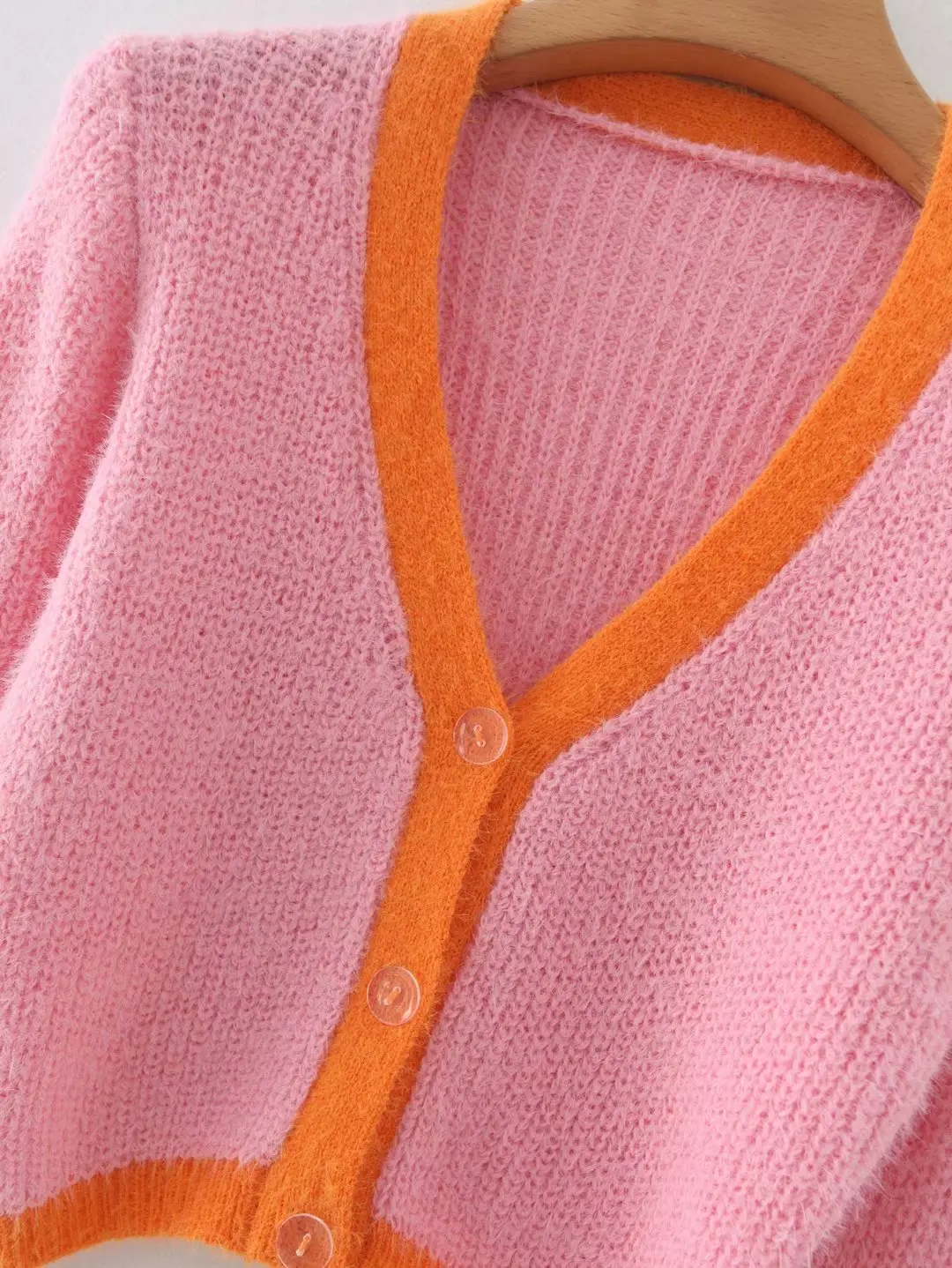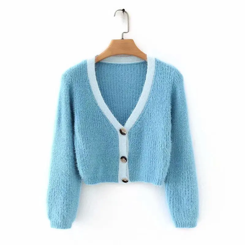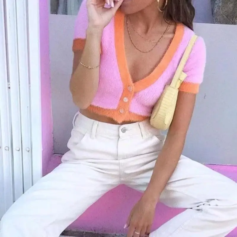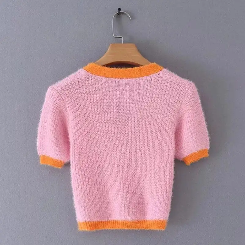 Розовый кардиган, женские свитера, корейский укороченный свитер, желтый осенний топ с коротким рукавом и v-образным вырезом, короткий кардиган из мохера, свитер на осень 2019
