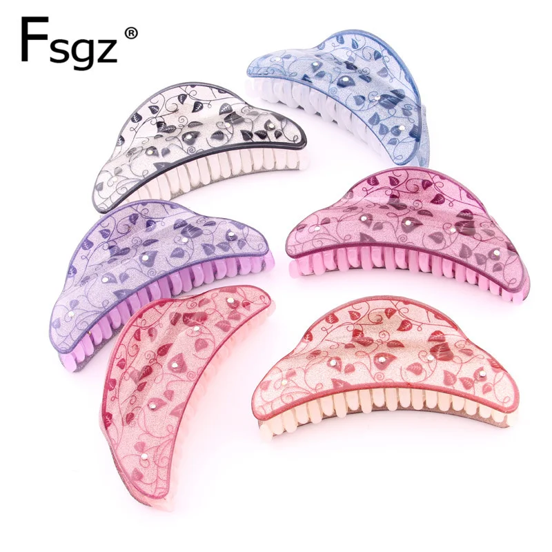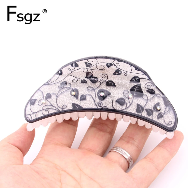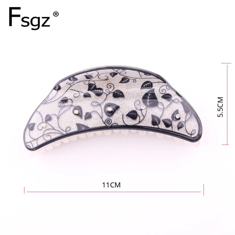 11 см, Большие Крабы для волос, винтажный узор в виде листьев, акриловые стразы, заколки для волос, Женский хвостик, держатель для ловли волос, головной убор