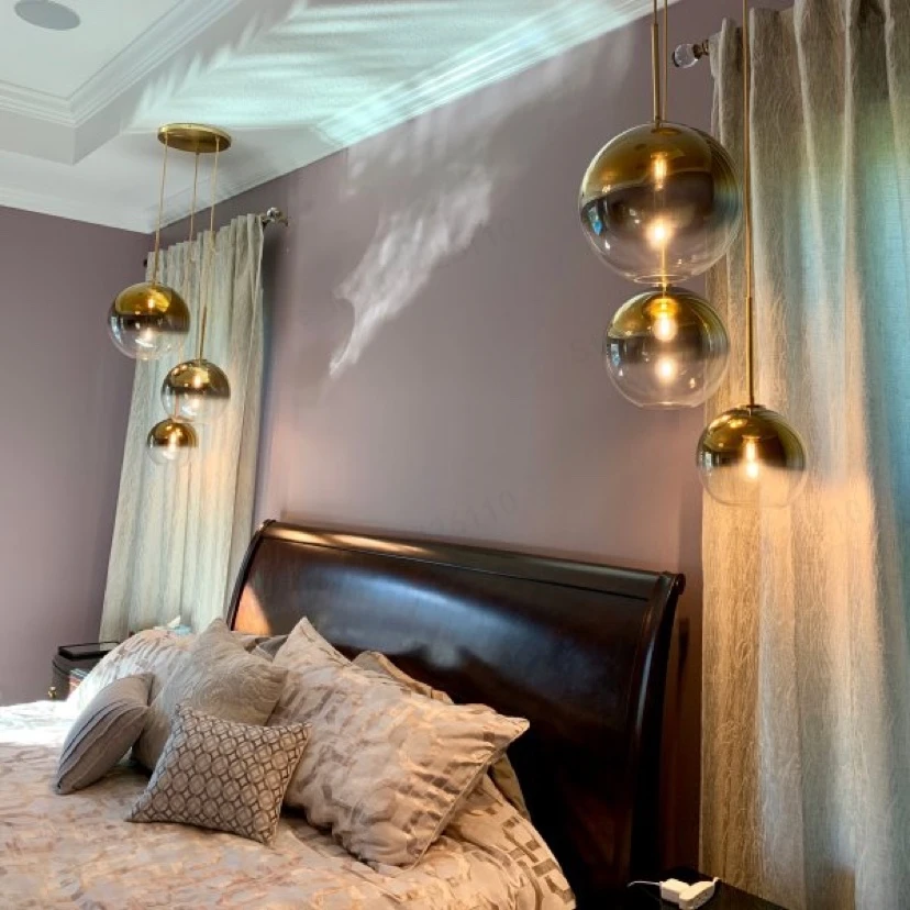 Скандинавская люстра с градиентным стеклянным шаром, прикроватная л...