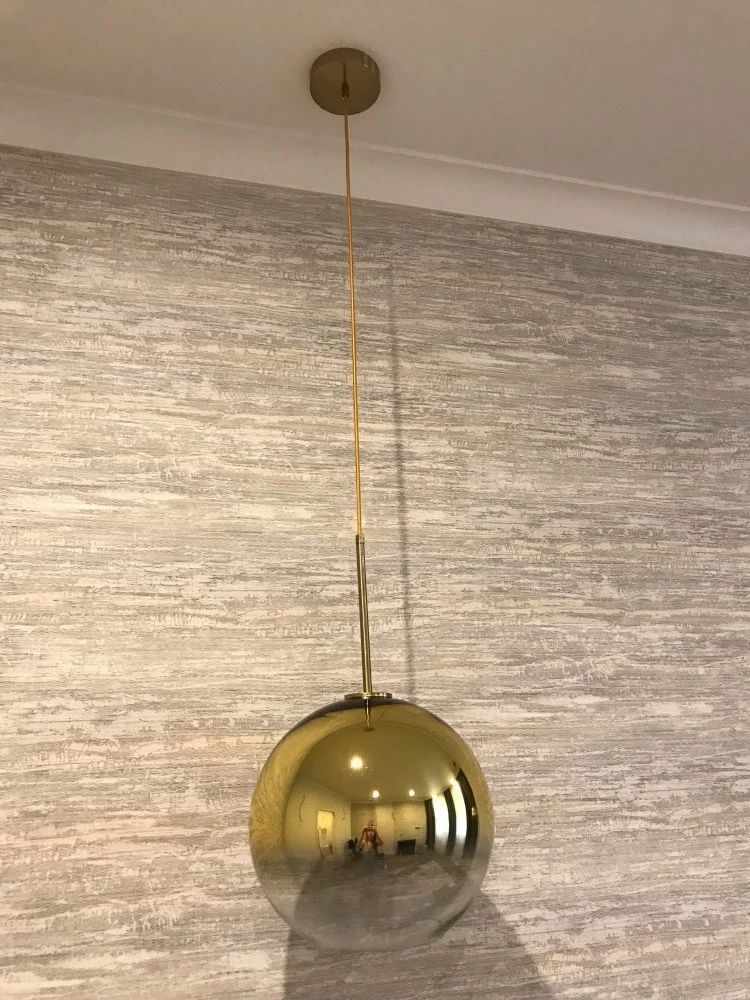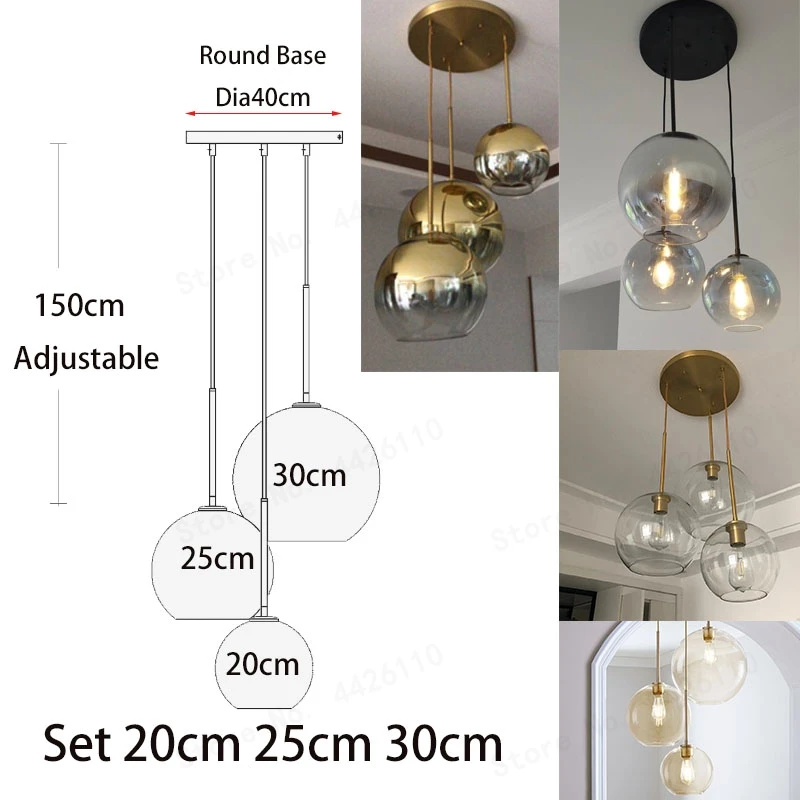 Если выбрать комплект из 3 ламп, Потолочная пластина будет 40 см круглой потолочной плиты.Черная Потолочная пластина и черная проволока для серебряного шара.Золотая Потолочная пластина и Золотая проволока для золотого и прозрачного шарика.