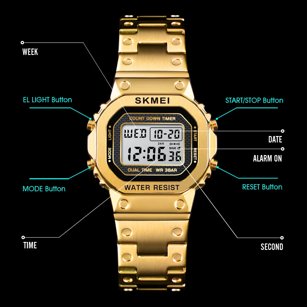 Женские цифровые часы SKMEI, Водонепроницаемые многофункциональные часы с ремешком из нержавеющей стали, наручные часы Reloj Digit Mujer, новинка 2019