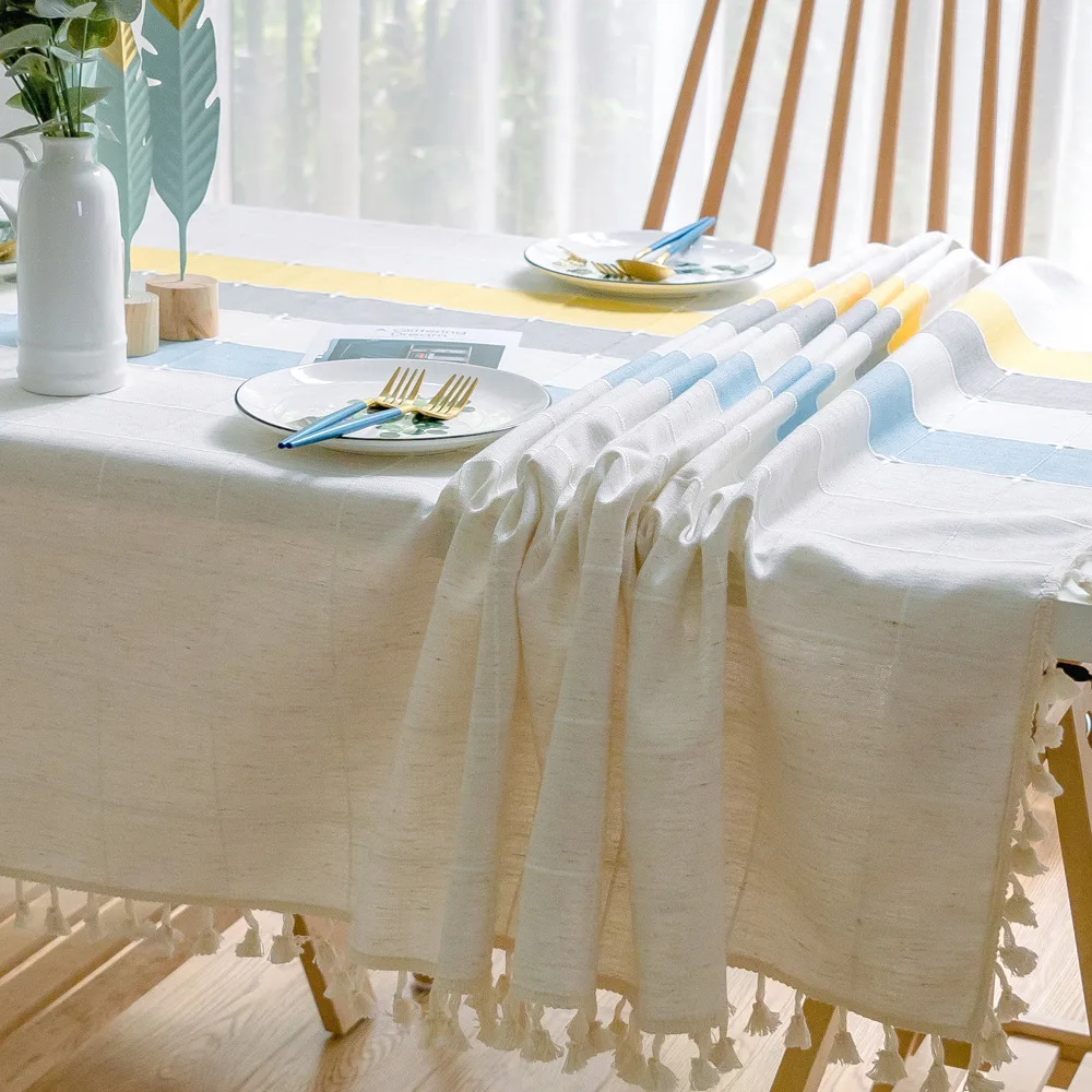 Креативная клетчатая декоративная льняная скатерть с кисточками, водонепроницаемая маслостойкая плотная прямоугольная скатерть для свадебного обеденного стола