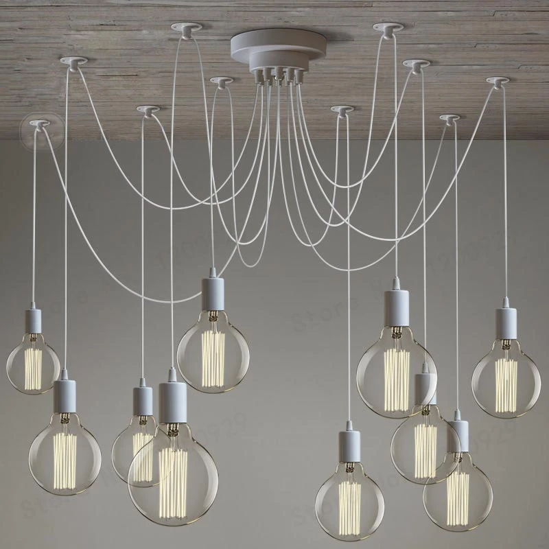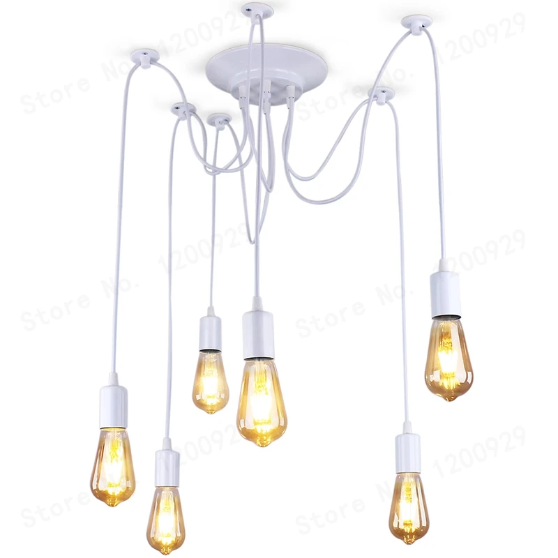 Светодиодный винтажный светильник Эдисона в стиле ретро, люстра-паук, белыйчерный светильник Эдисона, Регулируемый потолочный светильник E27
