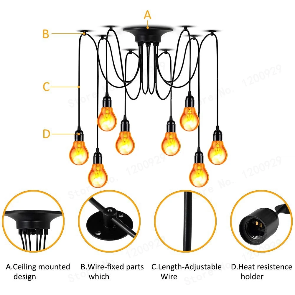 Item TypeArt Spider Pendant Lamp,Ceiling Lamp Fixture,Edison Bulb Chandelier