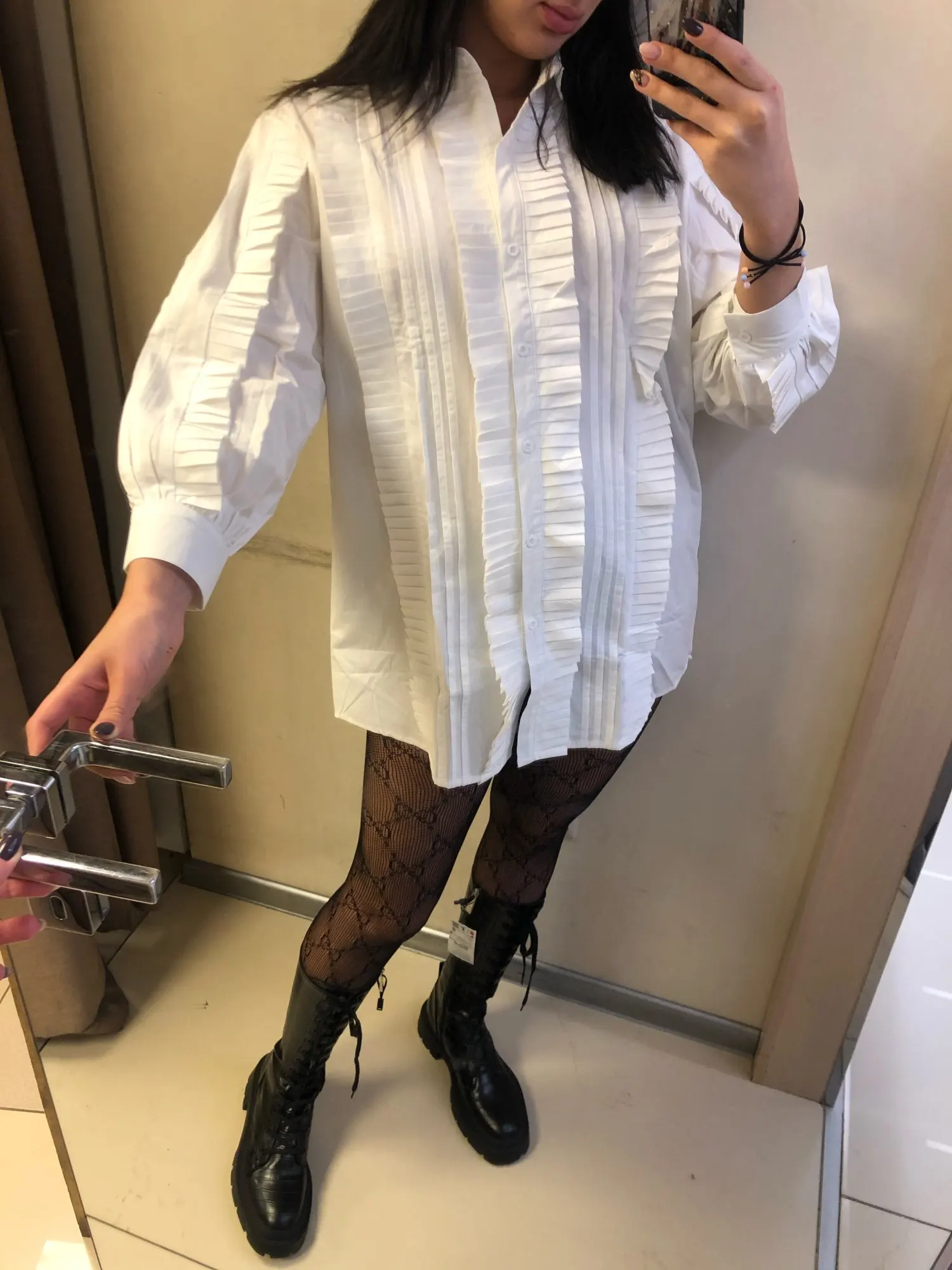 Очень хорошая вещь, как на фото, однако рукава немного короткие. Воротник тоже не такой белый, но это не стыдно