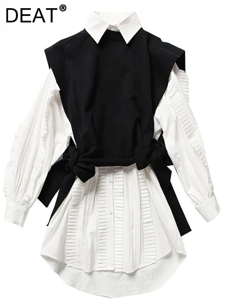 Женское однобортное платье с круглым вырезом DEAT, платье-жилет с отложным воротником и оборками, весна 2022