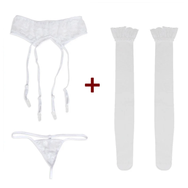 просто шлак , пояс пришел уже разорван по шву ! на стрингах зона бикини 2 на 2 см чулки с торчащими нитками