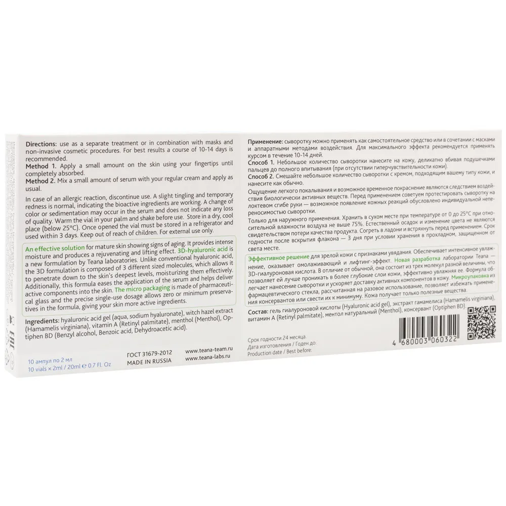 Teana сыворотка для экспресс омоложения быстрое уменьшение морщин, восстановление упругости и эластичности, увлажнение, 10x2 мл