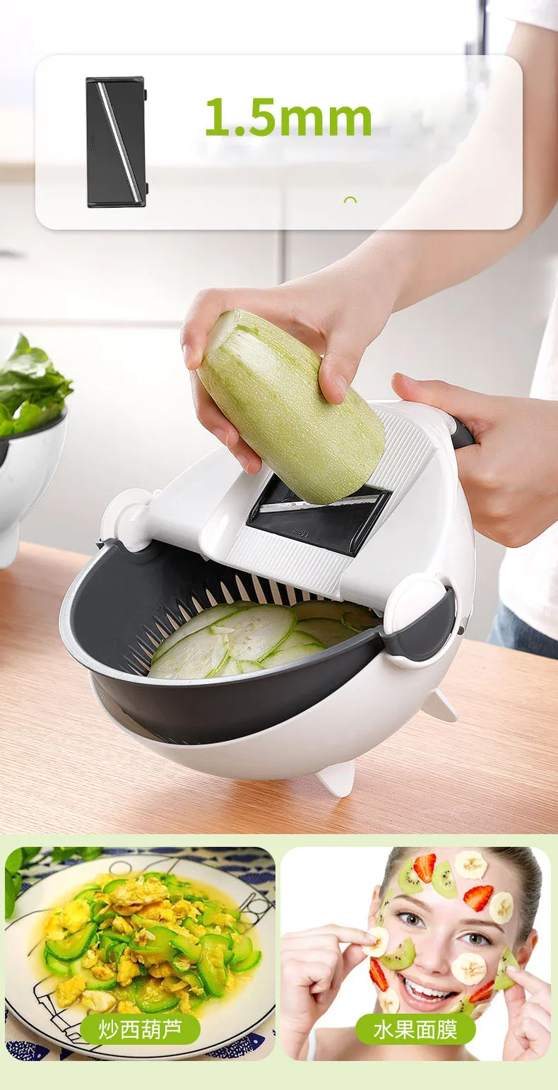 Многофункциональная ручная овощерезка, вращающаяся овощерезка с сливной корзиной, Многофункциональный кухонный измельчитель овощей, терка, слайсер, Бесплатная овощечистка