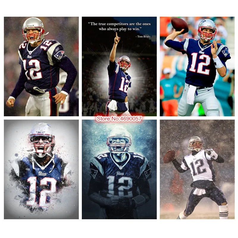 Картина из страз Американский футбол Тома Брэди, полноразмернаяКруглая Мозаика 5D сделай сам, спортивный постер, Набор для вышивки крестиком