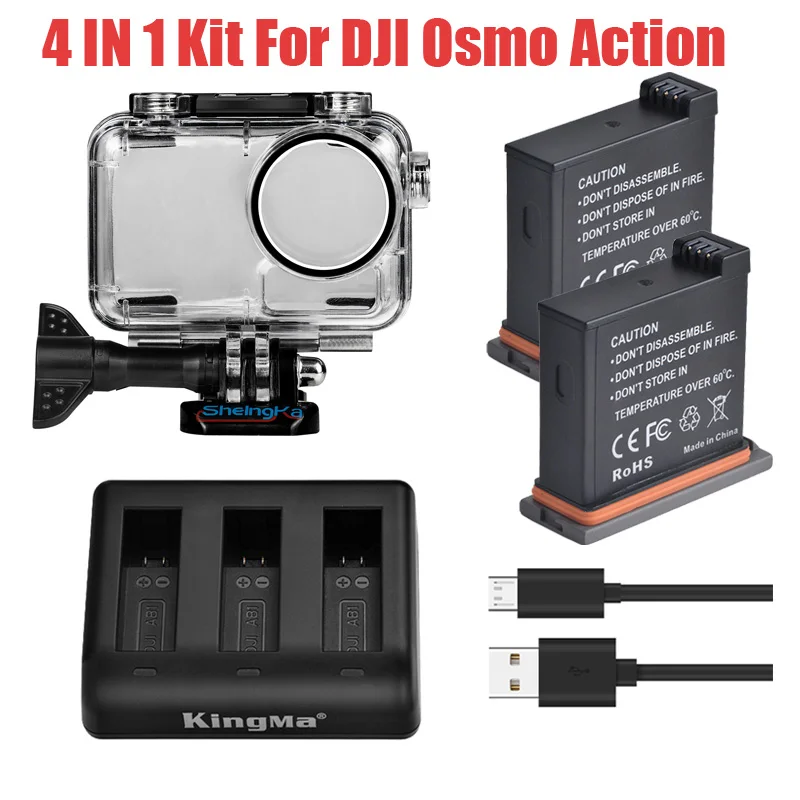 Литиевый аккумулятор для DJI OSMO Action3-стороннее зарядное устройствоВодонепроницаемый защитный корпус для дайвинга аксессуары для экшн-камеры DJI