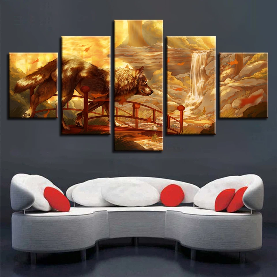 Постер с принтом, домашний декор, холст, 5 шт., картина принцессы Мононоке, аниме, настенное искусство, современная картина для спальни, Модульная картина