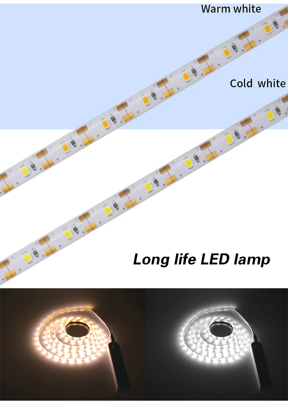 Светодиодный светильник с датчиком движения, Индукционная Светодиодная лента с аккумулятором 60 светодиодовм 2835smd, лампа под кроватью для шкафа, гардероба, лестницы