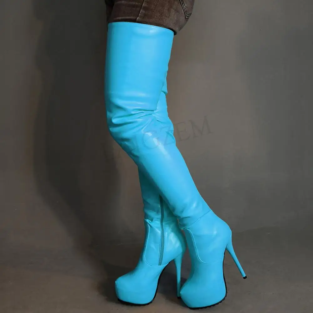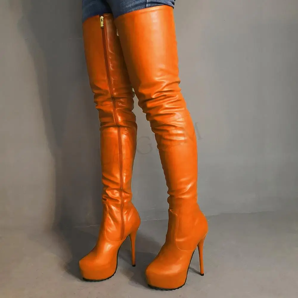 Сапоги женские до бедра, на платформе, на шпильке, с молнией сбоку,...