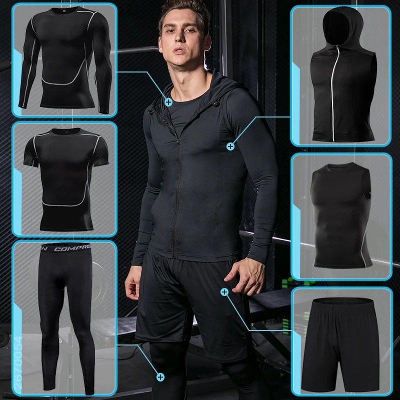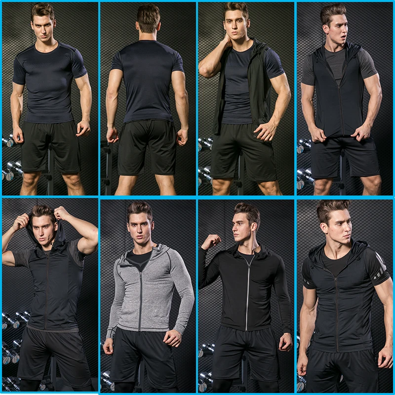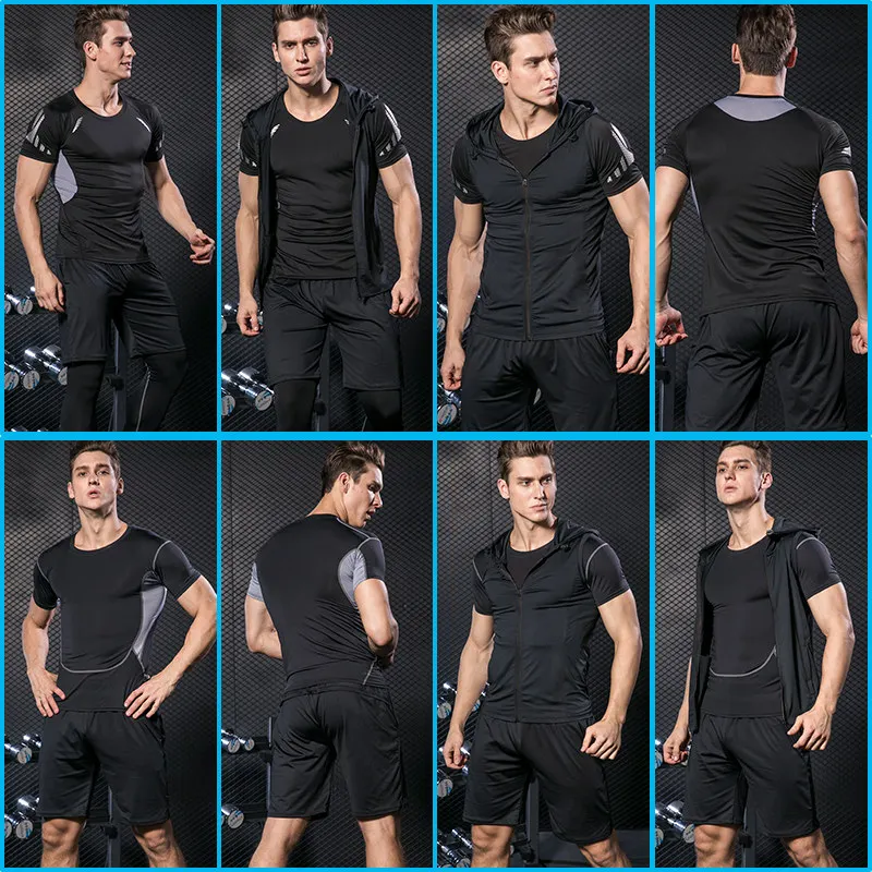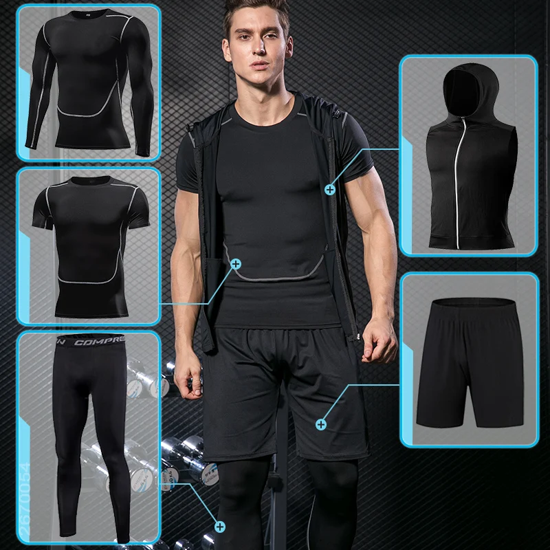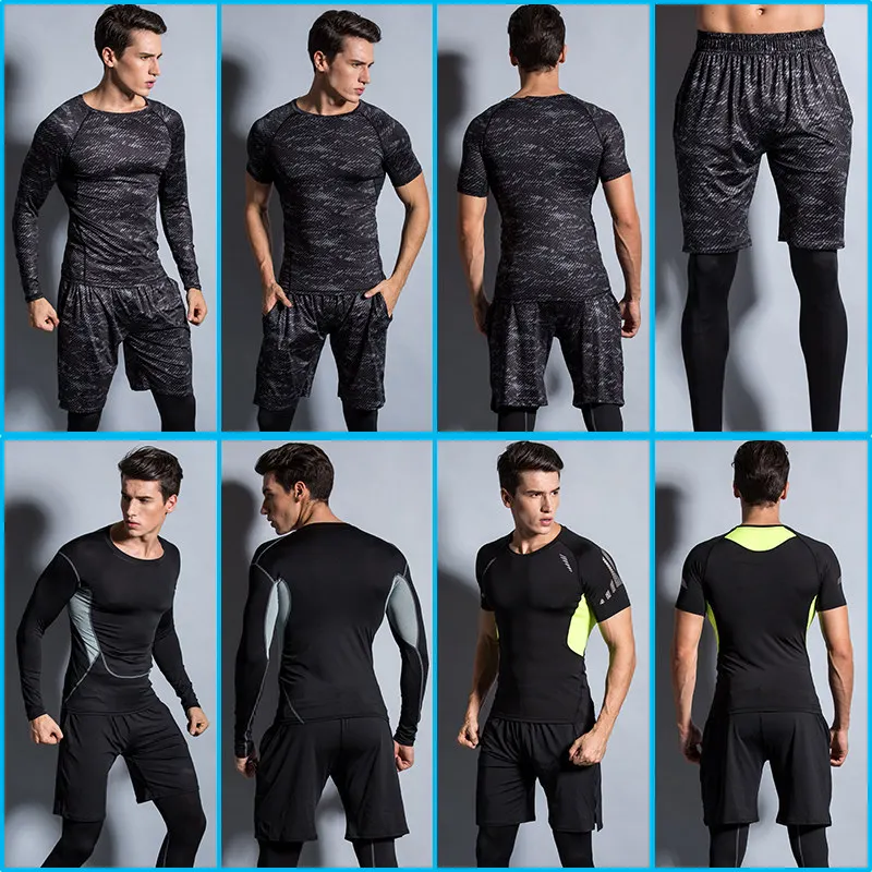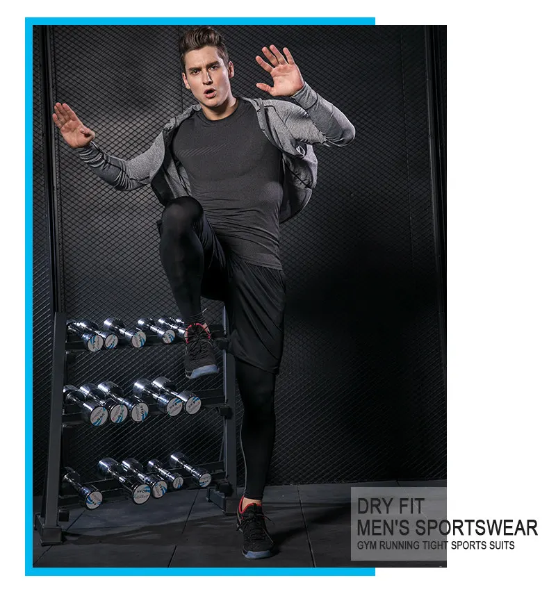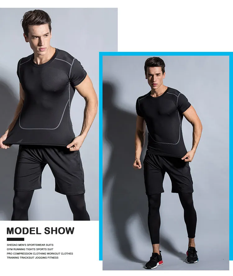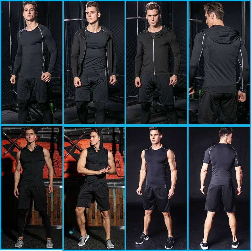 Бег Спортивный Набор Для Мужчин тайтсы Спортивная Одежда Тренажерный Зал Фитнес Спортивная Костюм Открытый Тренировки Сжатия Спортивный Костюм Черный,тайтсы мужские,спортивный костюм мужской,спортивный костюм,спортивны