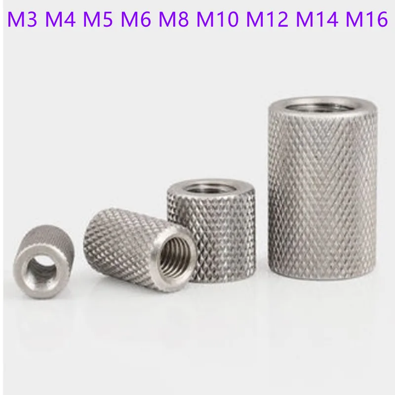 2-5 шт.лот накатанная круглая муфта M3 M4 M5 M6 M8 M10 M12 M14 M16 длинная рифленая ручная гайка из нержавеющей стали
