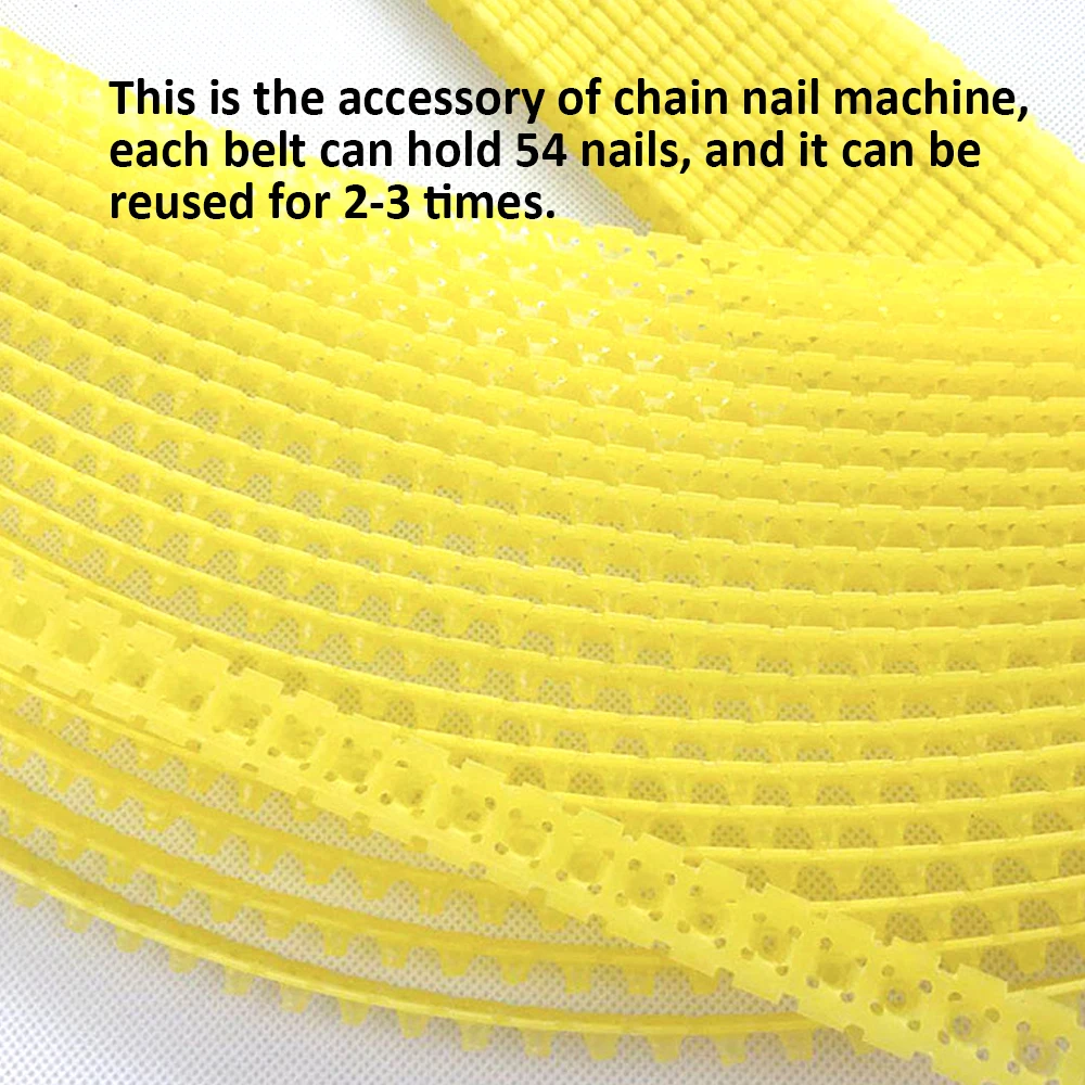Это аксессуар для станка для ногтей с цепью, каждый ремень вмещает 54 ногтя, его можно использовать повторно 2-3 раза.