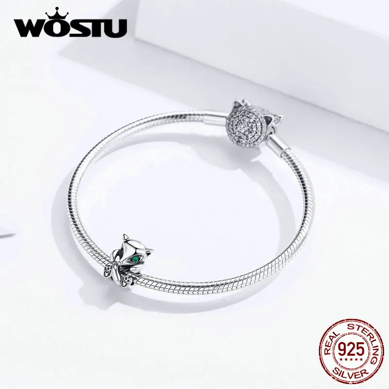 WOSTU 2019 дизайн Gennuie 925 пробы серебряные милые маленькие лисички бусины Подвески подходят для браслетов и ожерелий DIY Изготовление ювелирных изделий CQC1290