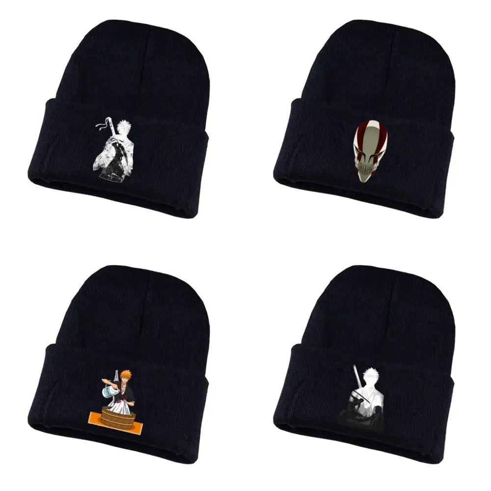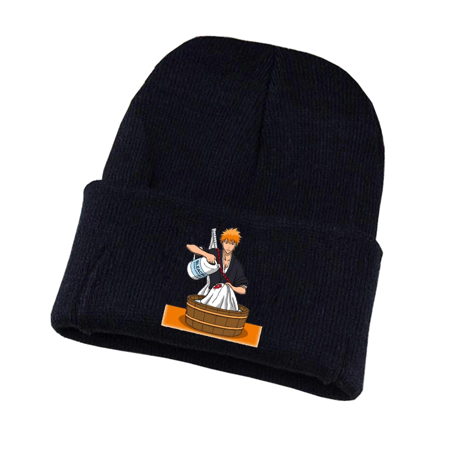 Зимняя теплая шапка, вязаная шапка с аниме отбеливателем, шапка унисекс, хлопковая шапка с принтом, зимняя вязаная шапка для подростков, шапки-бини, шапка