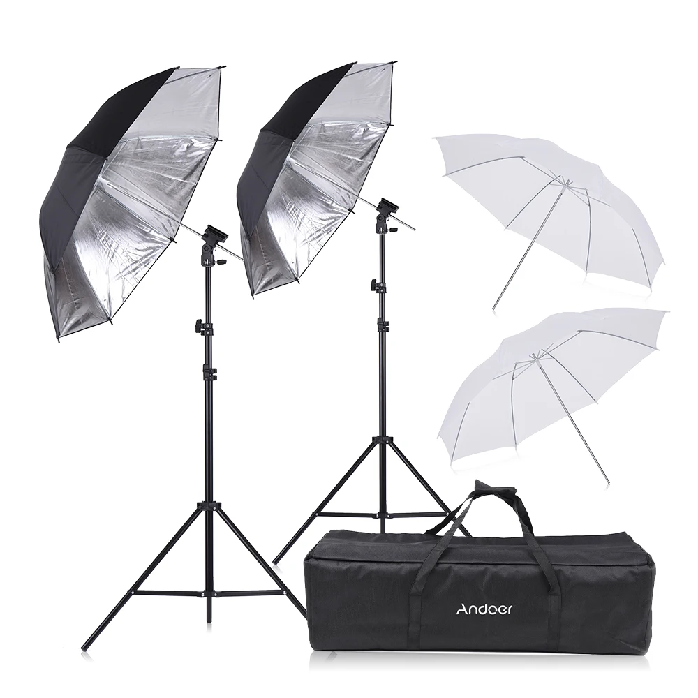 Комплект АОсобенности:-Мягкий белый зонт-светильник премиум класса * 2Изготовлен из высококачественного нейлона и металлической конструкции.Хорошо работает для рассеивания светильник из каких-либо флеш светильник или постоянного светильник.Он может производить нейтральную цветовую температуру.Светильник вес и легко настроить, отражать и распределять светильник поток равномерно.33in(85 см) в ширину с изображением блестящего света при открытии; Диаметр вала: 0.31in (0,8 см).-Энергосберегающий светильник 45 Вт * 245 Вт, чистый белый дневной свет.Цветовая температура 5500K обеспечивает яркую среду для фотографирования товара.Компактный и простой в установке. Его гнездо подходит для большинства стандартных фотоприборов.Напряжение: 230 ВРазмер изделия: прибл. 18*5,8 см/7,1 * 2.3in (Д * Ш * Г)-Поворотное гнездо * 2Предназначен для работы со всеми винтовые светильники.Встроенный держатель для зонта, идеально подходит для того, чтобы держать вас в мягком зонтике-светильник.Его можно установить на любой стандартный светильник-подставку.Легко регулируется под разными углами съемки.Длинные шнуры помогут вам свободно перемещать их для лучшего освещения.Разъем:Штепсельная Вилка европейского стандарта, 230 В-2 м/6.6 футов светильник-подставка * 2Этот светильник изготовлен из алюминиевого сплава, очень прочный.С 3-х секционный дизайн, ее рабочая высота регулируется от 75 см до 200 см.Высота в сложенном виде: 665 мм; Диаметр трубки: 25 мм/22 мм/19 мм.Он может дать исключительную прочность для тяжелой работы, обеспечивая безопасность вашего осветительного оборудования при использовании.Стойка-светильник поддерживает все основные фотографии оборудования, такие как студийный светильник, держатель лампы, лампа-светильник, зонтик и т. Д.Характеристики:Посылка Размеры: 72*19*18 см/28,4*7,5 * 7.1inВес посылка: 3000 г/105,8 унцийПосылка:2 * белый зонт2*45 Вт лампа2 * поворотное гнездо2*2 м/6.6 футов светильник-подставкаПримечание:Пожалуйста, обратите внимание! Убедитесь в совместимости между Товаром и вашим домомСистема питания с точки зрения напряжения и штепсельной вилки.Комплект BОсобенности:Подставка и сумка в комплекте с двумя стендами, 1 шт., перекладина 3 м, два зажима и все аккуратно помещаются в тяжелую сумку для переноски.Эта подставка изготовлена из алюминиевого сплава и имеет трехступенчатый регулируемый вал и резиновые ножки, придавая ей исключительную прочность для тяжелой работы.Эта подставка имеет максимальную высоту 200 см.Двухсекционный отдельные телескопической перекладины можно отрегулировать ширину от 1,5 м до 3 м/4.9ft для 9.8ft легко.Складная конструкция рамы для установки освещения и более удобного хранения.С подвижными зубьями для фиксации задника или других предметов.Устанавливается в считанные минуты и хранящиеся в переносной чехол.Эта подставка может использоваться как светильник, стоящий отдельно.Чехол для переноски встроен в небольшой карман для инструментов.Характеристики:Тип: комплект перекладин с двумя зажимамиМатериал: алюминийВысота: до 2 м/6,6 футовШирина: до 3 м/9,8 футовРазмер посылка: 85,5*17*11 см/33,7*6,7*4,3 дюймаПосылка Вес: 3080 г/6.79LBПосылка:1 * набор перекладины2 * подставки2 * зажим1 * сумка для переноскиКомплект CОсобенности:Набор для фотостудии Andoer включает в себя 2 шт. 2 м светильник, 2 шт. 83 см полупрозрачные белые зонты мягкого света, 2 шт. 83 см черные и серебряные зо