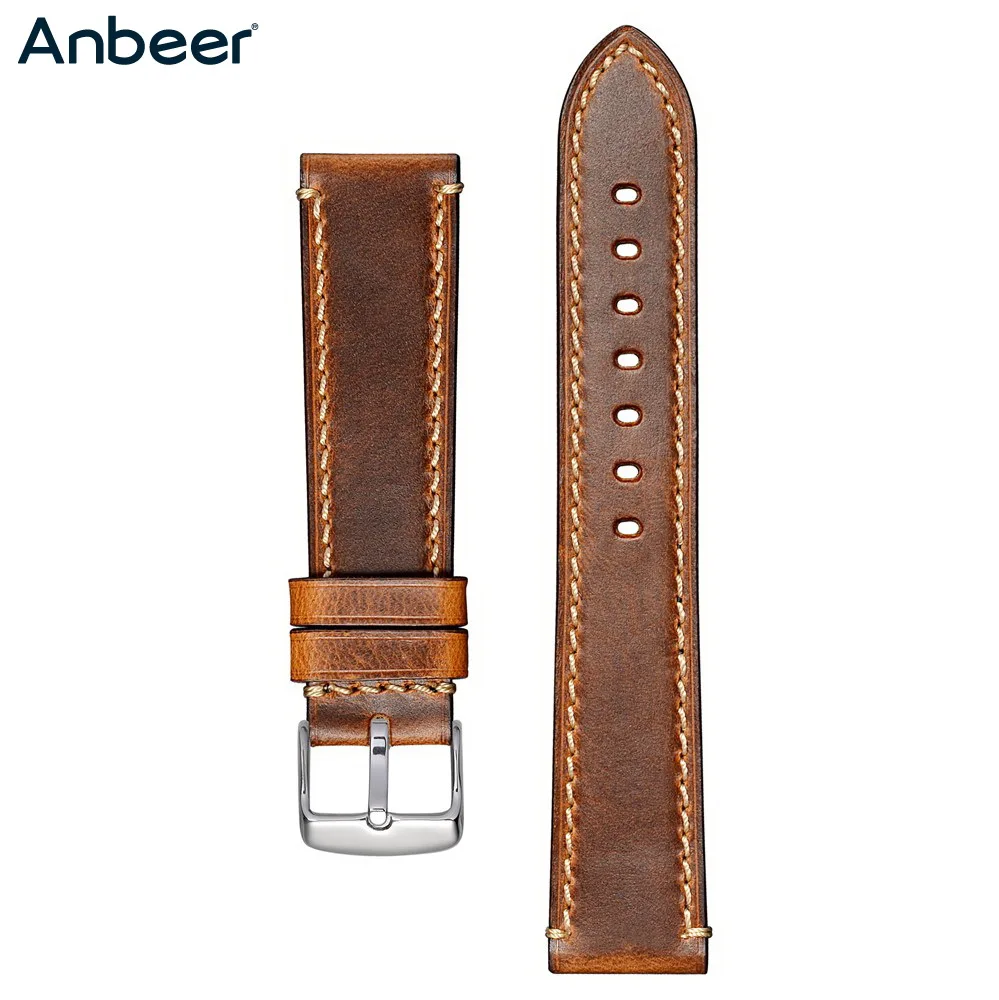 Ремешок для часов Anbeer в винтажном стиле, кожаный немецкий браслет Крейзи Хорс в стиле ретро, 18 мм 20 мм 22 мм 24 мм