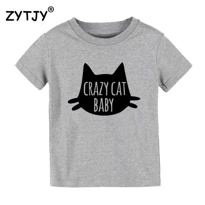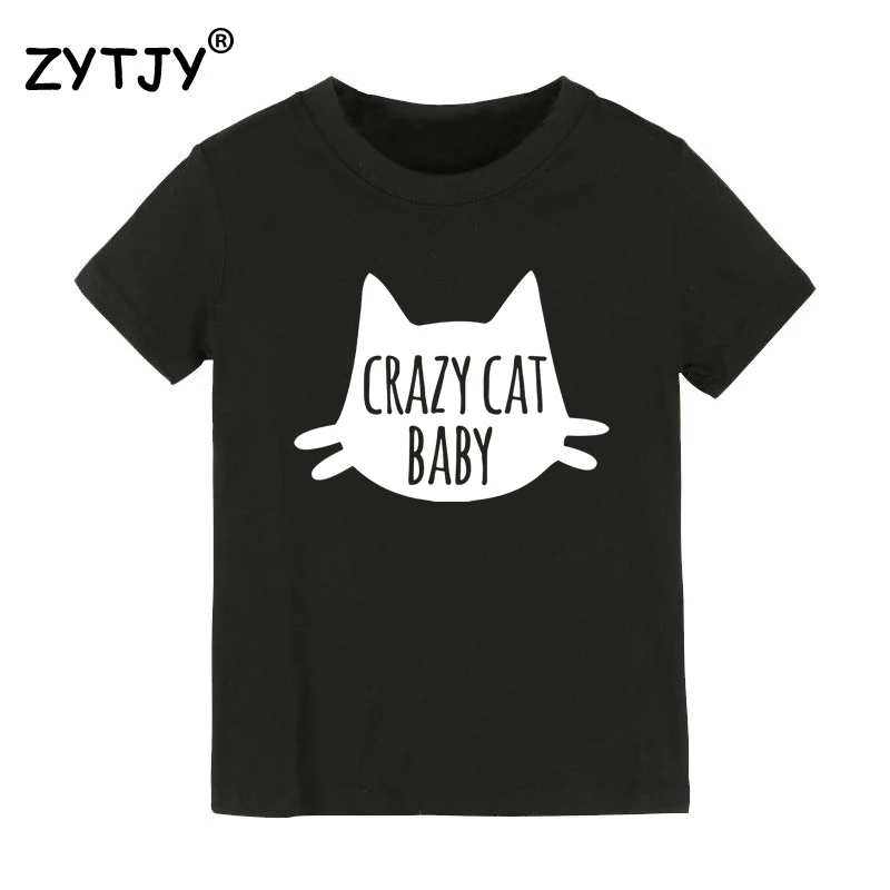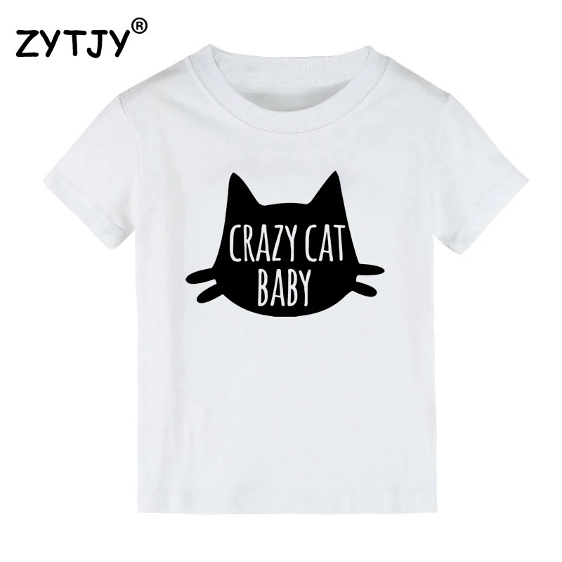Детская футболка с милым принтом Crazy Cat футболка для мальчиков и девочек, детская одежда для малышей Забавные футболки Tumblr, Прямая поставка, CZ-78