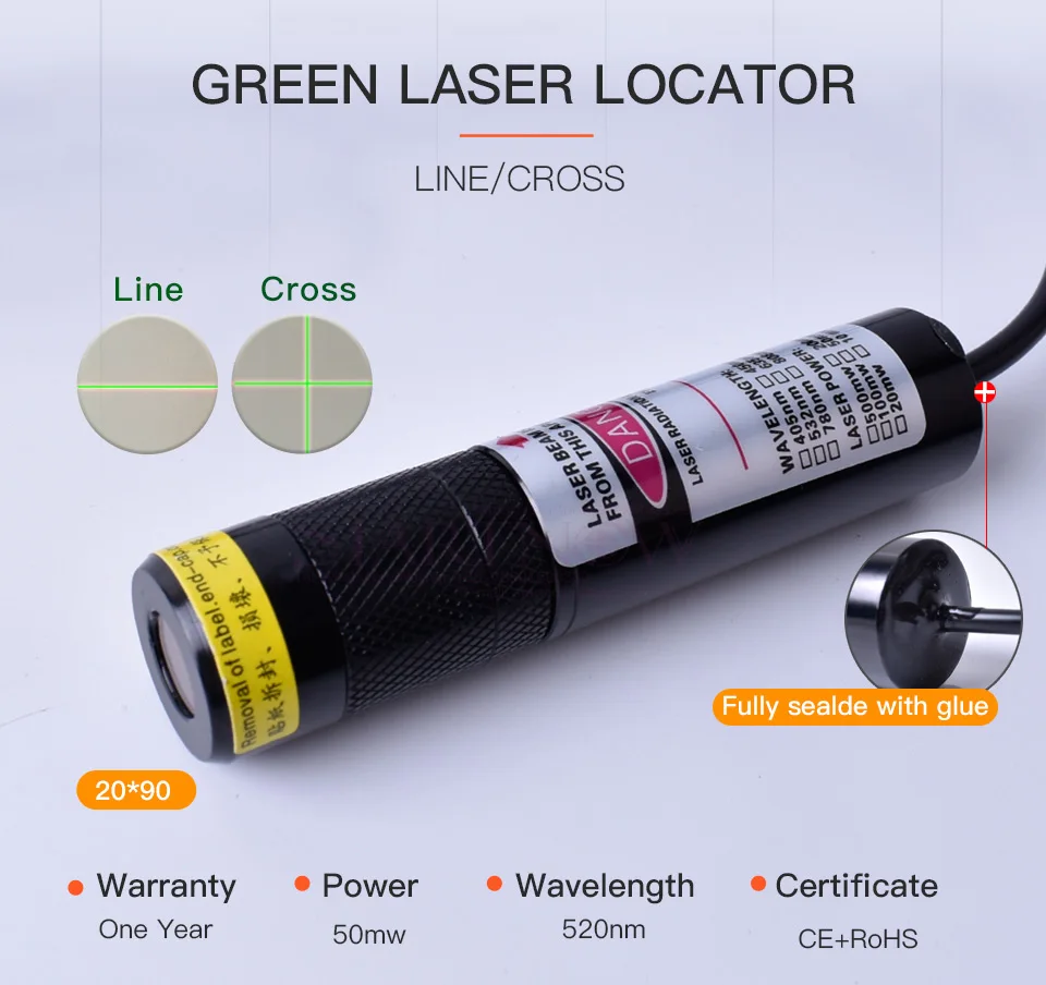 Зеленый лазерный модуль 20*90 520nm, зеленый лазерный модуль выравн...